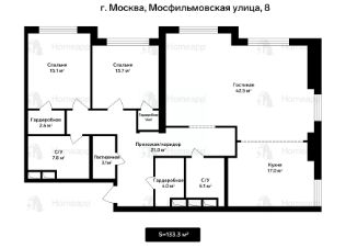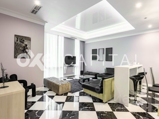 Эта квартира расположена на 32/33 этаже, общей площадью 133,3 м², высотой потолков 3,3 м, на двух сторонах света и полностью готовое для жизни пространство, из панорамных окон которого открываются великолепные виды на Москву-реку и здание МГУ.