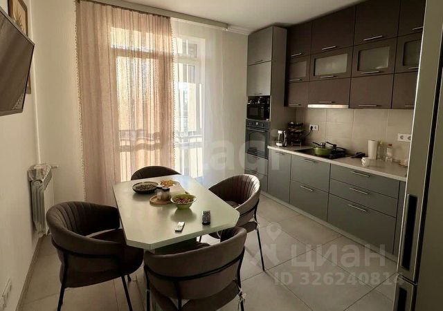 Уютная кухня со встроенной техникой и мебелью, есть посудомоечная машина 60*60, установлены фильтры для воды. Выход на большую застекленную лоджию из кухни.
