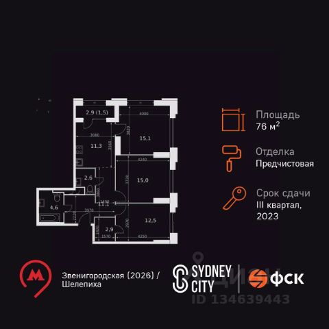 Цена указана с учётом скидки при 100%-й оплате, несубсидированной ипотеке, рассрочке (кроме программы "Рассрочка 0%"). В жилом квартале продаётся 3-комнатная квартира площадью 74.80 кв.м white box. Квартира расположена на 16 этаже 48 этажного корпуса 1 в жилом комплексе комфорт класса Level Звенигородская (компания Level Group/Левел групп). Отличная транспортная доступность - 5 мин. пешком до метро "Звенигородская" (откроется к окончанию строительства); - 18 мин. пешком до станции МЦК "Хорошёво" и станции БКЛ "Народное ополчение"; - 4 мин. на авто до ТТК; - 8 мин. на авто до Садового кольца; - 15 мин. на авто до Кремля. Продуманный архитектурный проект - Концепция от студии Станислава Михаловского, в основу которой легло единение природы и города; - Двухкамерные стеклопакеты в окнах, алюминиевый и ПВХ профиль - в квартирах тепло зимой и прохладно летом; - С верхних этажей откроются панорамные виды на город, Москву-реку, "Москва-Сити" и Москворецкий парк; - Лобби со всеми удобствами: окна в пол, высокие потолки до 4,7 м, лаунж-зоны, колясочные, гостевые санузлы и мойки для лап животных; - Централизованные водонагреватели гарантируют круглогодичную подачу горячей воды в каждую квартиру. Благоустройство Концепция благоустройства разработана совместно с бюро UNK landscape. Высота башен приближается к 200 метрам - они словно касаются неба. Небесный простор проецируется на территорию двора с помощью подсветки, визуально увеличивая пространство и отражаясь в авторских элементах архитектуры. На территории площадью 0,45 га расположатся: - "Облако событий" - место встреч и общения; - "Облако спорта" - всё для поддержания себя в форме; - "Облако принятия решений" - пространство для работы на свежем воздухе; - "Облако спокойствия" - для отдыха в тишине природы; - "Облако игр" - площадки для подростков и самых маленьких. Инфраструктура В жилом комплексе откроется 21 коммерческое помещение: продуктовые лавки, кафе, салоны красоты, службы доставки и творческие студии. Этап 1 включает строительство двухуровневого подземного паркинга. Всего здесь расположится 351 машино-место, включая семейные места, и 264 кладовых помещения. В распоряжении жителей развитая инфраструктура района: 15 супермаркетов, 5 спортивных объектов, 9 медучреждений, 7 детских садов, 4 школы, 3 благоустроенных парка - всё в шаговой доступности. Инженерия Комфортное перемещение внутри домов будут обеспечивать надёжные лифты с доступом в паркинг с жилых этажей. В каждом корпусе предусмотрено до шести кабин, включая сервисные лифты. Попасть на территорию комплекса можно только по единому ключу доступа. Видеонаблюдение установлено на входах в подъезды, в лобби, в общих зонах, на въезде в паркинг. Гости смогут связаться с жителями дома через входные видеопанели, а управлять доступом на территорию можно через видеодомофон или приложение на телефоне.