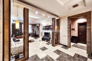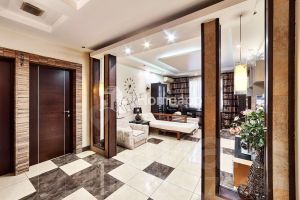 Квартира полностью меблирована, мебель остается, большой шкаф купе в коридоре, в комнате итальянский спальный гарнитур , санузлы оснащены сантехникой, чугунная ванна- джакузи.