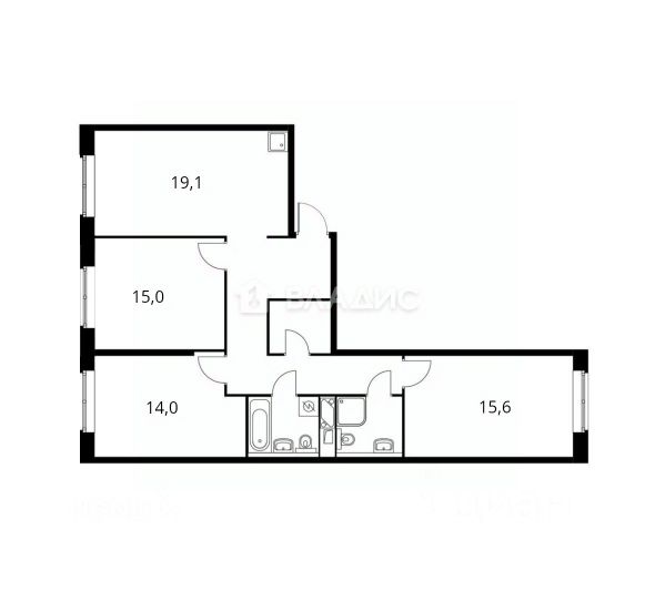Планировка квартиры включает два отдельных санузла, что удобно для большой семьи или гостей. Окна выходят на улицу, что обеспечивает хорошее естественное освещение.