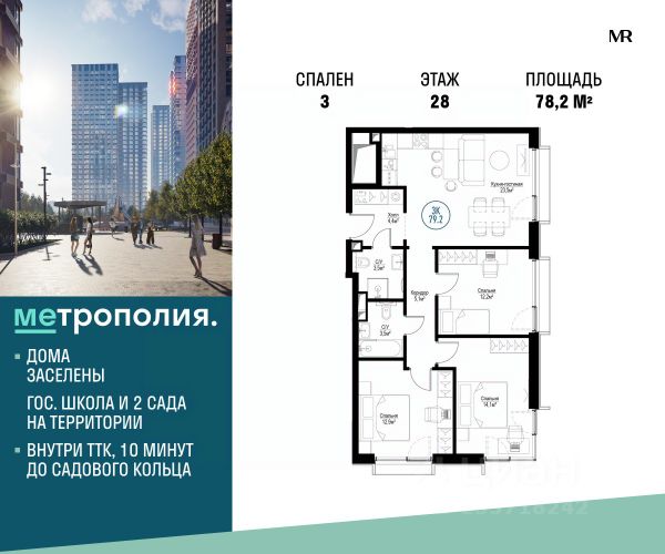 Продаётся 3-комнатная квартира общей площадью 77.90 м², на 11 этаже. Метрополия - это город городов. Коллекция лучших решений из самых прогрессивных мегаполисов планеты. Для тех, кому комфортно в любой точке мира. Все корпуса выполнены в своем индивидуальном стиле и получили свои названия в честь мировых метрополий. Эта концепция сохраняется и в дизайнерских лобби, которые выполнены в едином стиле с детальной проработкой декора и использованием характерных для каждого мегаполиса материалов. Высотные здания "Метрополии" образуют благоустроенное дворовое пространство на 4,6 га, которое украсят более 400 деревьев и несколько сотен кустарников, живописные цветочные клумбы и аккуратные газоны. Территория комплекса продумана до мелочей: - Запланировано строительство государственной школы, а также 2 частных и одного государственного детских садов; - Сформированы несколько тематических зон; - Предусмотрено место для спокойного отдыха с кафе; - Зона активности для сторонников здорового образа жизни с тренажерами для воркаута и площадкой для стритбола и петанка. Детские площадки разделены по возрастам от малышей до подростков, на всех площадках используется оборудование европейского производителя, уложено резиновое покрытие, которое позволяет детям играть в полной безопасности. Современные инженерные решения не оставят вас равнодушными: - Скоростные и бесшумные лифты; - Пожарная и охранная сигнализация; - Система навигации с ночной подсветкой по всей территории комплекса; - Wi-Fi-покрытие в зоне лобби и по всей территории комплекса; - Система распознавания лиц для доступа на территорию ЖК; - Система контроля и учета энергоресурсов; - Контроль доступа на парковку по системе считывания номеров. Продается 3-комнатная квартира с евроремонтом в районе Южнопортовый в Москве.