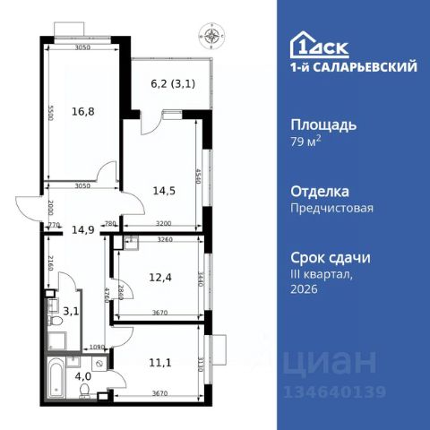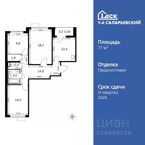 Прямая продажа от застройщика! Жилой Комплекс класса Комфорт+. Продаётся 3-к квартира номер 12 общей площадью 77.7 кв.м. на 4-м этаже 9 этажного дома. Отделка Whitebox. Цена с учётом скидки! Особенности квартиры: - Просторная спальня, в которой можно разместить большую кровать. - Распашная планировка - отличное сочетание удобства и свободы. - Увеличенная ширина окна/окон - больше света и визуального простора. - Гостевой санузел - комфорт и удобство для ваших гостей. - Место для игры/занятия спортом - идеальное пространство для активных детей. - Можно оборудовать 2 или более рабочих места - пространство для нескольких человек. - Можно оборудовать рабочее место - комфорт для работы и учёбы. - Просторная кухня - место для семейных ужинов и кулинарных экспериментов. - Просторная мягкая зона - комфорт и уют для отдыха всей семьи. - Линейная кухня - функциональность и практичность в одном решении. - Наличие острова на кухне - удобство и стиль для вашей кухни. - Гардеробная - удобство для хранения и организации вещей. - Лоджия - уютное место для отдыха и тишины. Квартира с предчистовой отделкой (White box). Вам не придется заниматься черновыми и трудоёмкими работы, а чистовую отделку и дизайн - сделайте на свой вкус. Информация о комплексе: Весь микрорайон спроектирован в концепции "без машин". Пейзаж не портят припаркованные автомобили, а родители могут не опасаться за перемещение детей по всему кварталу. Территория комплекса - царство пешеходов. А что делать, если Вы или Вам подвезли чтото габаритное? Проблему решают сквозные подъезды, открывающие доступ в здание с внешней стороны комплекса. Проезд к домам организован по внешнему контуру микрорайона. Места для автомобилей отведены на 7 этажах наземного паркинга и в подземном паркинге 6-го корпуса. За порядком и безопасностью зорко следит множество камер. Безбарьерная среда облегчает передвижение по территории молодых родителей с колясками, маленьких детей и жильцов с ограниченными возможностями. Транспортная доступность: "1-й Саларьевский" расположен в Новой Москве всего в 2 км от МКАД и 5 минутах ходьбы от метро Саларьево. Если Вы за рулем, для Вас удобный выезд на скоростное Киевское шоссе. Передвигаетесь не на автомобиле? Станция метро Саларьево и автовокзал в пешей доступности. У метро находится один из крупнейших ТЦ Новой Москвы "Саларис". Это значит, что всевозможные покупки и разнообразные развлечения для всей семьи тоже рядом. Личный автотранспорт: До Киевского шоссе - 0,2 км До МКАД - 2,4 км До Калужского шоссе - 5 км До Ленинского проспекта - 3,2 км Общественный транспорт: До станции метро "Саларьево" - 7 мин пешком До остановок наземного транспорта - 5-10 мин пешком До Ленинского проспекта на автобусе - 10 мин Внутренняя инфраструктура: Во дворе царит атмосфера легкого беззаботного настроения. По сторонам расположились любимые местными жителями магазинчики, где можно купить товары первой необходимости, кафе, где приятно посидеть с