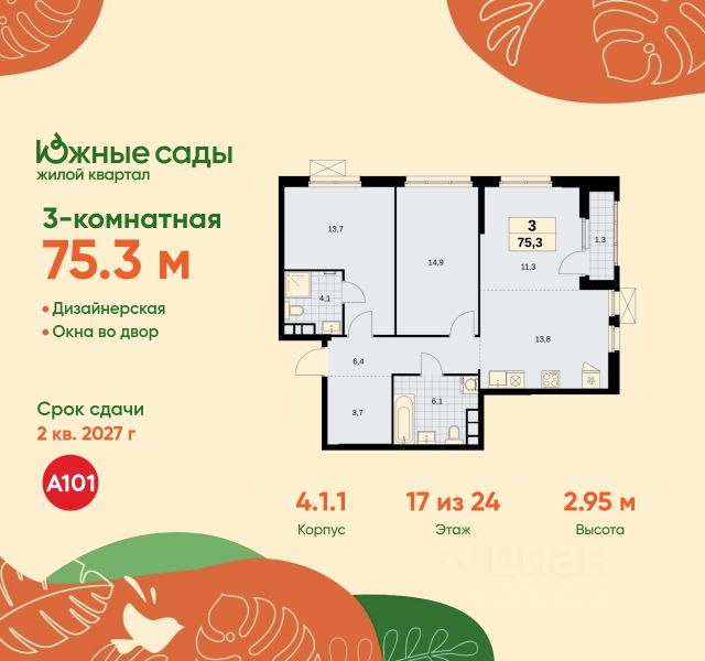 Продается трехкомнатная квартира 53 в новостройке ЖК "Дом на Зорге" по адресу Москва, САО, Сокол, улица Зорге, 25с2, Москва, 125252. Общая площадь квартиры - 87.30 кв. м., этаж 6 из 16, секция 1. Тип проекта, по которому построен дом - монолит, компания-застройщик - ООО "А101". Стоимость квартиры - 33605646 Р. Срок сдачи - 4 квартал 2025. ПРЕДЛОЖЕНИЯ ОТ ЗАСТРОЙЩИКА В НОЯБРЕ 2025: Ипотека от 13,9 % для всех! На весь срок. "Семейная ипотека" вернулась. Ставка от 3,5 % на весь срок! Без удорожания! Выгодное ипотечное комбо: Ипотека от 2200 р./мес. и от 6 % после рождения ребёнка! Ипотека для всех "Держи пять!" - ставка 5 % на 2 года! *более подробную информацию по скидкам и акциям уточняйте в отделе продаж Дом на Зорге" - жилой комплекс бизнес-класса в историческом районе Москвы со сложившейся инфраструктурой.Корпуса переменной этажности с элегантными монохромными фасадами гармонично вписаны в статусное окружение. Архитектурно-художественная подсветка подчеркнёт изысканные очертания дома.В приватном и тихом дворовом пространстве появится фонтан со слэбами натуральных камней, детские площадки, места для настольных игр и спокойного отдыха. Безопасность обеспечат видеонаблюдение, центральный пост охраны и система контроля доступа. Округ, где строится "Дом на Зорге" (САО), известен ведущими медицинскими центрами страны, престижными учебными заведениями (включая школы), спорткомплексами, бизнес-центрами. В лобби с дизайнерской отделкой предусмотрены круглосуточный консьерж-сервис, колясочные, зоны ожидания, аппараты для чистки обуви. Подземный 2-уровневый паркинг оснащён системой автоматического распознавания номеров. Всего в 350 м - станция метро "Зорге". До "сердца" столицы - 11 км. Преимущества "Дома на Зорге" - престижная локация с развитой инфраструктурой - 350 м от станции метро (МЦК) "Зорге" - закрытый приватный двор с уникальным благоустройством