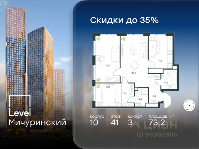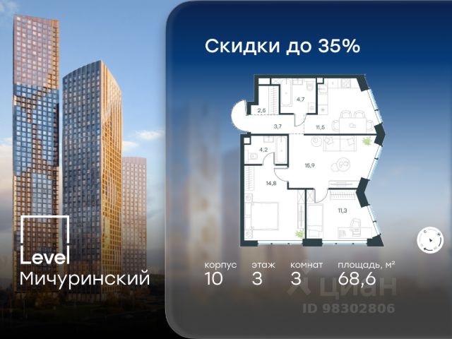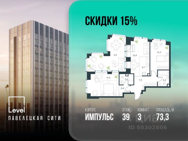 В Даниловском районе столицы (ЮАО) продаётся 3-комнатная квартира площадью 56.80 кв.м без отделки. Квартира расположена на 2 этаже 45-этажного корпуса 'Горизонт' в жилом комплексе бизнес-класса Павелецкая Сити. Высота потолков 3.00м. Престижная локация "Павелецкая Сити" - жилой комплекс бизнес-класса, расположенный в престижном Даниловском районе Москвы, на границе с ЦАО. Проект находится в историческом центре города в окружении парков, Москвы-реки и сформированной инфраструктуры. В пределах 20 минут пешком есть 3 станции метро, а в 5 минутах езды на авто - ТТК и Садовое кольцо. - 15 мин. пешком до метро "Павелецкая"; - 20 мин. пешком до станций "Тульская" и "Серпуховская"; - 8 мин. на авто до Кремля; - 10 мин. на авто до парка Горького и парка "Зарядье"; - 20 мин. на авто до башен "Москва-Сити". Авторская архитектура Архитектурная концепция разработана бюро СПИЧ по индивидуальному проекту. Облик корпусов I и II очередей отсылает к стилистике архитектуры классического Нью-Йорка и золотой эпохи Голливуда. Корпуса IV очереди вдохновлён эстетикой ар-деко в её современном переосмыслении. Благодаря линейному расположению корпусов из большинства квартир будут открываться потрясающие виды на исторический центр города и Москву-реку. Дизайнерские лобби Изысканные интерьеры лобби жилого комплекса отсылают к классическим фильмам золотой эпохи Голливуда. Классика в "Павелецкая Сити" - не имитация, а современное осмысление лучшего в этом стиле. В каждом вестибюле оборудованы стойки ресепшен, комфортные зоны ожидания, гостевые санузлы, мойки для лап животных, колясочные. В корпусах по 3-4 лифта, включая сервисный, с прямым доступом в паркинг. Площадь лобби - от 47,9 до 114,9 кв. м, высота потолков - до 5,46 м. Благоустройство и инфраструктура Для создания благоустройства было приглашено 2 ведущих бюро - ADM и GAFA. Разноуровневое пространство вмещает всё необходимое для качественного досуга: игровые площадки для детей всех возрастов, тропы здоровья для пеших прогулок, крытые аллеи с качелями, места для работы на свежем воздухе, многофункциональные спортивные площадки - воркаут-зоны, столы для пинг-понга, зоны командных игр. Общая площадь закрытого двора - 4,63 га. Комфорт - это когда рядом всё, что нужно для жизни. На первых этажах и в стилобатной части корпусов "Павелецкая Сити" размещены 85 коммерческих помещений, где откроются супермаркеты, кафе, пекарни, аптеки и другие службы сервиса. В составе проекта также предусмотрены собственный фитнес-клуб и развивающий центр Letovo Kids, а также школа на 720 мест и детский сад на 175 мест. Технологии и безопасность - Wi-Fi в лобби и на придомовой территории; - Автоматизированная система контроля и учета ресурсов; - Круглосуточное видеонаблюдение и охрана; - Круглосуточная связь с охраной через приложение, телефон или кол-центр; - Контроль доступа по биометрической системе Face-ID; - Усиленный сотовый сигнал в лифтах и паркинге; - Распознавание номеров автомобилей при въезде/выезде в/из паркинга.