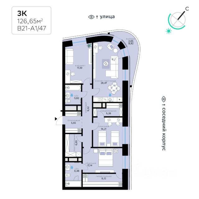 В продаже — двухкомнатная квартира с чистовой отделкой, общей площадью 71,8 кв. м. Квартира расположена на пятом этаже десятиэтажного дома класса Оптимум в квартале В17 нового района СберСити, который строит Сбер. Всего в доме — 54 квартиры. Квартал В17 — современная интерпретация голландской архитектуры. Каждый корпус имеет индивидуальный облик. В домах класса Оптимум используется лаконичная крупноформатная облицовка стеклофибробетоном и декоративными металлическими панелями. На верхних этажах расположены квартиры с панорамным остеклением и террасами, с которых открываются виды на город, парки и бульвар. В квартирах предустановлена система "умный дом" — комплекс решений, объединяющий квартиру, дом и прилегающую территорию. Жильцы могут регулировать климат и освещение голосом или со смартфона, установлена защита от протечек. Проведены работы по улучшению шумоизоляции, установлены двухкамерные стеклопакеты с алюминиевым профилем и скрытыми створками. В санузлах — тёплый пол. В доме расположены: • уютное лобби, • коворкинг, • общественная терраса, • детская игровая комната, • лапомойка, • колясочная и велосипедная комната на первом этаже, • подземный паркинг. Квартал В17 состоит из шести корпусов переменной этажности (от 1 до 10 этажей) и 491 квартиры. Корпуса объединены общей подземной частью, где расположен паркинг на 309 автомобилей, места для мотоциклов и более 400 кладовых помещений. Во дворах созданы приватные благоустроенные пространства с ландшафтными композициями, детскими и спортивными площадками, зоной для йоги, прогулочными маршрутами и местами отдыха. Рядом расположен детский сад, парк и набережная Москвы-реки. СберСити — это новый жилой и деловой район на западе Москвы, в одном из самых экологически чистых и престижных мест столицы. Это первая в России и крупнейшая в мире инновационная городская среда, созданная по международным стандартам зелёного проектирования. Здесь внедряются решения в области энергоснабжения, вакуумного мусороудаления, тестирования зелёных технологий, а в дальнейшем — системы искусственного интеллекта для управления домами и городской инфраструктурой. Строительство проекта началось в 2021 году, заселение первых корпусов — с лета 2024-го. Общая площадь территории — 461 га, из них более 2,5 млн кв. м жилья и около 833 тыс. кв. м офисных пространств. Будет построено 7 школ, 13 детских садов и 2 поликлиники. В СберСити будут жить 65 тыс. человек и работать 70 тыс. Развитием территории занимается АО "Рублёво-Архангельское", входящее в группу Сбер. СберСити — место, где хочется жить, работать и растить детей. Переезжайте в СберСити!