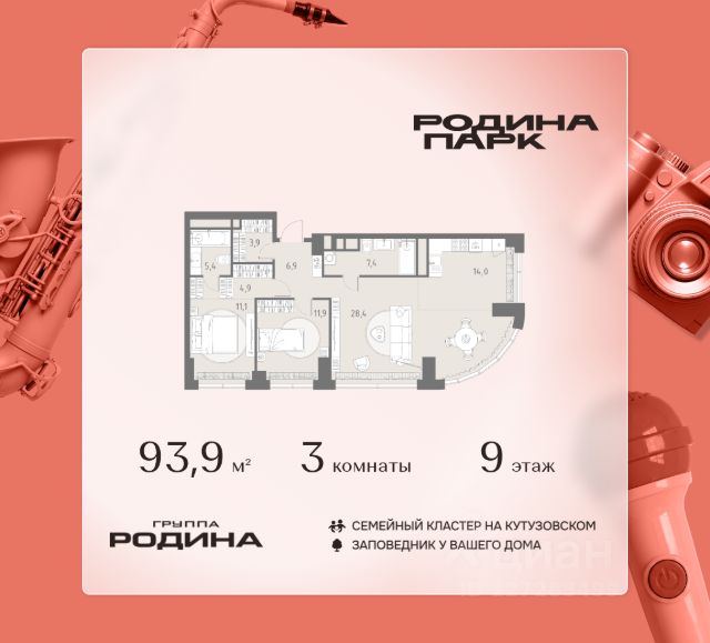 В жилом кластере Родина Парк рядом с природным заказником Долина реки Сетунь продаётся 3-комнатная квартира. Продуманная европланировка, которую легко зонировать под ваши запросы. Потолки от 3,1 м. "Родина Парк" — премиальный семейный кластер с образовательным медиакластером, строящийся на западе Москвы в окружении природного заповедника "Долина реки Сетуни". • Скидки недели на избранный пул лотов • Рассрочка 0% на выгодных условиях до 2 лет • Семейная ипотека, подбор комбо-вариантов ипотечных программ прямо в офисе продаж • Скидки 8% при 100% оплате или ипотеке. ЛОКАЦИЯ: 8 минут пешком до станции БКЛ "Давыдково". 12 минут на автомобиле до Нового Арбата. Удобные выезды на Кутузовский проспект, Аминьевское шоссе. ИНФРАСТРУКТУРА И СЕРВИСЫ ДЛЯ ЖИТЕЛЕЙ - Уникальная экосистема для развития, здоровья и творчества на территории 3,5 Га: - Первый в России образовательный медиакластер (с участием Русской медиагруппы) для творческого развития детей и взрослых с возможностью получить востребованную профессию в сфере шоу-бизнеса. - Инфраструктура и сервисы для семей с детьми на территории жилого кластера (частный детский сад, детские игровые пространства, творческие студии для занятий музыкой и танцами, безопасная и комфортная среда для детей и родителей), событийно-культурная площадка для проведения семейного досуга); - Здоровая среда (биохакинг-центр, фитнес-зал и спортивная инфраструктура во дворе, медитационные пространства, инженерные решения для освещения, свежего воздуха и очистки воды, сервисы красоты и поддержания активного долголетия); - Сервисы заботы (инфраструктура комфорта - подземный паркинг, кладовые, колясочные, консьерж- сервис, умный дом, мобильное приложение, профессиональная управляющая компания, сервисы охраны и обеспечение абсолютной безопасности) - Комьюнити резидентов (социальные пространства для дружеского и делового общения - летний атриум с уличным кинотеатром, зоны отдыха, кафе и рестораны, комьюнити-сервис с культурно- событийной программой в медиакластере); - Модуль благосостояния (комфортные пространства для работы и саморазвития - коворкинги и переговорные). ИНФРАСТРУКТУРА РАЙОНА: Насыщенная образовательная среда: филиалы МГИМО, МГУ, МГТУ, Сколково. Топовые школы: 6 лучших частных школ Москвы и области (Forbes) в 10 минутах езды. Природное окружение для пеших прогулок, спорта и отдыха. "Родина Парк" — это место, где растут и дети, и ваши возможности. Экосистема, где всё подчинено развитию — физически, профессионально, творчески.