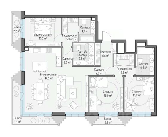 Просторная квартира площадью 120,6 м² с панорамными видами на Миусский парк, Москва-Сити, Садовое кольцо и во двор. Продуманная планировка с двумя мастер-спальнями, гардеробной и ванной с окнами. ЭНИГМИЯ — дом-скульптура, притягивающий взгляды и раскрывающий секрет красивой жизни. Загадочная красота окружает каждого, кто здесь живет, проявляясь в каждой детали. ЗНАКОВЫЙ ИСТОРИЧЕСКИЙ РАЙОН С АУРОЙ ПОДЛИННОЙ МОСКВЫ. ЭНИГМИЯ вписана в историческое окружение, как редкий камень в достойную оправу. Ее силуэт возносится над историческим центром, притягивая восхищенные взгляды своей совершенной формой и невероятным парящим мостом. • ЦАО, Тверской район; • 3 минуты на автомобиле до Садового кольца. АРХИТЕКТУРА, СОЗДАННАЯ ВОСХИЩАТЬ. Два элегантных корпуса высотой 15 и 19 этажей объединяет парящий мост-сад на уровне 16-го этажа, создающий редкий для центра столицы архитектурный образ. Авторский почерк бюро АДМ узнается в каждой линии: плавные контуры фасадов расширяются снизу вверх, очаровывая выразительной пластикой света и тени, изгибы моста напоминают реку, застывшую в небе. УНИКАЛЬНЫЙ ПАРЯЩИЙ-ДВОР САД НА ВЫСОТЕ. На высоте 57 метров раскинулся парящий двор-сад — частный оазис в центре мегаполиса. Это пространство, где архитектура встречается с природой: много зелени, чистый и прозрачный воздух, насыщенный кислородом, обилие солнечного света и ничем не загороженные виды. • Уникальное игровое пространство для детей, разработанное профильным SCAPE BURO LLC; • Кинотеатр; • Просекко-бар для вечерних встреч с видом на закат; • Зона отдыха с шезлонгами и гамаками; • Пространство для занятий йогой; • Пространство для пикников с гриль-зоной. ДВА УРОВНЯ ВДОХНОВЕНИЯ UPSIDE КЛУБ. Еще одна грань красивой жизни — уникальный Upside Клуб. Это пространства для отдыха и общения, где соседи становятся друзьями. • На высоте: пространства для проведения мероприятий, дегустаций и видеоигр. • В лобби: приватный фитнес-клуб, салон красоты, переговорная, детская игровая комната. РОСКОШЬ КЛУБНОЙ ЖИЗНИ. Всего 92 резиденции образуют камерное сообщество тех, кто ценит тишину, комфорт и безупречную организацию жизни. • Управляющая компания с богатым опытом в элитном классе; • Сервис отельного уровня 24/7; • Портье-сервис и услуги по подаче и парковке автомобиля; • Арт-консьерж; • Отдельный вход для курьеров и помещение для хранения посылок; • Сервисные лифты. КОМАНДА ПРОЕКТА: • СТР Констракшн генеральный подрядчик; • АДМ архитектурное бюро; • Архитектурное бюро Олега Клодта планировочные решения резиденций; • Бюро Чехарда концепция детской игровой комнаты; • SCAPE BURO LLC концепция благоустройства на высоте и на земле.