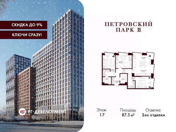 Рассрочка 0%. Первый платёж 30%, второй - не позднее 31.12.2026 г. Продаётся 3-комнатная квартира 109.4 кв.м. в ЖК "Петровский парк II" на 19-м этаже 25 этажного дома. ЖК "Петровский парк II" — жилой комплекс в Савёловском районе, где город ощущается иначе. Здесь история и масштаб Москвы не давят, а задают фон для спокойной, уверенной жизни рядом с центром. Это место, где статус читается не в громких формулировках, а в окружении, архитектуре и ощущении пространства. Коротко о важном: • Район с глубоким историческим контекстом и парковым окружением; • 5 минут пешком до метро "Динамо", рядом с деловой и культурной жизнью города; • Редкое сочетание: энергия мегаполиса и тишина зелёных аллей; • Архитектура от бюро Синтаксис с пластикой форм и индивидуальным характером фасадов; • Панорамные виды на город и зелёные массивы Петровского и Тимирязевского парков; • Закрытый двор без машин, вдохновлённый эстетикой дворцовых садов; • Просторные входные группы с высокими потолками и выверенной, респектабельной эстетикой; • Частный детский сад во дворе; • Подземная парковка и кладовые; • РГ-Девелопмент - ТОП-20 крупнейших застройщиков Москвы. Расположение комплекса формирует особое ощущение свободы выбора. Утром - прогулка по тенистым аллеям Петровского парка, днём - работа и встречи в деловых кластерах поблизости, вечером - культурные события, рестораны и городские пространства в нескольких минутах пути. Здесь расстояния измеряются не километрами, а шагами от дома. Архитектура "Петровского парка II" задумана как современный архитектурный акцент района и одновременно как уважительный диалог с исторической средой. Асимметричные объёмы, волнообразные элементы и игра света и тени создают выразительный, но сдержанный силуэт. Архитектура наполнена воздухом и визуальным ритмом, оставаясь спокойной и уверенной. Общественные пространства продолжают эту логику. Два парадных вестибюля с высокими потолками и благородной цветовой палитрой воспринимаются как пространства, где хочется замедлиться: встретить гостей, перевести дыхание после дня или просто почувствовать уровень среды, в которой вы живёте. Внутренний двор комплекса - это отдельный мир, закрытый от машин и городского шума. Продуманное благоустройство территорий отсылает к регулярным дворцовым садам: геометрия аллей, зелёные "кабинеты", цветники и камерные зоны отдыха создают разные сценарии для повседневной жизни. Здесь органично соседствуют детские игровые пространства, спортивные зоны и тихие места для отдыха. На территории комплекса расположены магазины, кафе и рестораны, а также частный детский сад, встроенный в общую структуру двора. Подземная парковка и кладовые поддерживают ощущение порядка и цельности пространства.
