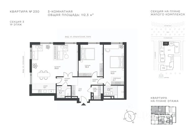 Успейте стать частью уникального проекта премиум-класса на западе Москвы! В продаже квартиры: 1-комнатные от 28,1 м²; 2-комнатные от 61,2 м²; 3-комнатные от 86,6 м²; 4-комнатные от 110,7 м². Первый взнос от 30%! Рассрочка на 2 года без переплат! Крылатское 33 это премиальный жилой комплекс от специализированного застройщика ООО "Сияние". Самый высокий небоскрёб в районе, достигающий отметки в 150 метров и малоэтажный клубный формат высотой от 42 метров на приватной территории площадью 1,4 га. Великолепные виды на излучину Москва-реки, Живописный мост и урбанистический облик города. Эксклюзивные форматы квартир с панорамным остеклением и патио-террасами. Двухуровневый паркинг на 271м/м, премиальные входные группы, ресторан высокой кухни, детский сад и эко-маркет на территории комплекса. Эксклюзивные преимущества: доступ к wellness-центру, коворкингу и клубной гостиной только для резидентов. Над проектом работали именитые российские архитектурные бюро: архитектор проекта бюро "Остоженка", планировочные решения от бюро Александры Федоровой. Расположение Пешком: 5-7 минут - до парка Звезд, Крылатского парка и набережной Москвы-реки; 15 минут - до метро Крылатское Арбатско-Покровской линии; 15 минут - до пристани Крылатская. На автомобиле: 10 минут - до Третьего транспортного кольца; 15 минут - до Садового кольца и Москва- Сити; 20-30 минут - до Аэропорта Внуково; 30-40 минут - до Аэропорта Шереметьево. В 300 метрах от комплекса - удобная транспортная развязка с проспектом Маршала Жукова, обеспечивающая легкий доступ к ключевым магистралям. Благоустройство: Просторная общественная гостиная; Коворкинг с кофе-баром, комфортные переговорные зоны с быстрым wi-fi, зарядными устройствами и библиотекой; Пространство friends lab для организации клубных мероприятий; Wellness-центр с фитнес-залом и массажными кабинетами; Ресторан высокой кухни; Частный детский сад; Детское кафе; Современный детский playhub; Спортивные площадки; Гипоаллергенный сад, безопасные водные пространства, декоративные пруды и сухие фонтаны; Высокоскоростные бесшумные лифты; Разделение зон для резидентов квартала и сервисного обслуживания. Окружение: - парки: Крылатские холмы, природно-исторический парк Москворецкий, Серебряный Бор; - учебные заведения: 5 образовательных комплексов, в которые входят 15 детских садов и 12 школьных корпусов. В удобной транспортной доступности гимназия им. Е. М. Примакова и международный лицей The International School of Moscow; - уникальные спортивные сооружения: гребной канал "Крылатское", легендарный велотрек "Крылатское", "Лата Трэк" для горнолыжников и сноубордистов, ледовый дворец "Крылатское"; - единственный в Москве парк развлечений под открытым небом, включающий более 70 вариантов досуга для любого возраста и времени года. Срок сдачи проекта: 2 квартал 2027 года. Финансирование и эскроу-счет обеспечены банком МКБ.
