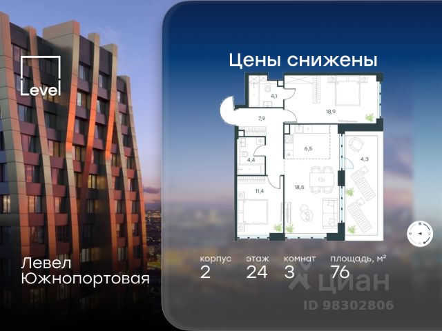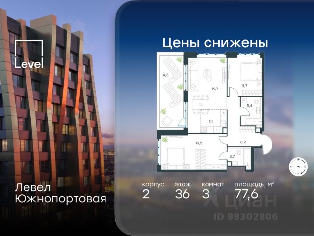 Цена указана с учётом скидки при 100%-й оплате, несубсидированной ипотеке, рассрочке (кроме программы "Рассрочка 0%"). В северной части района Печатники продается 3-комнатная квартира площадью 86.00 кв.м без отделки. Квартира расположена на 3 этаже 49-этажного корпуса 8 в жилом комплексе комфорт-класса Левел Южнопортовая (компания Level Group/Левел групп). Отличная транспортная доступность: - 10 мин. пешком до станции метро "Кожуховская"; - 20 мин. пешком до станции МЦК "Дубровка"; - 3 мин. на авто до ТТК; - 13 мин. на авто до Садового кольца; - 15 мин. на авто до Бульварного кольца. Продуманный архитектурный проект: - авторская архитектура от бюро СПИЧ; - уникальные виды на реку, парки и достопримечательности города; - высота потолков в квартирах до 6 м; - окна высотой до 1,87 м с высоким коэффициентом сопротивления теплоотдаче. Расположение: Жилой комплекс Левел Южнопортовая строится в северной части района Печатники - самой приближенной к центру. Здесь будет сформирован новый район "Южный порт", где построят крупный жилой и общественно-деловой центр, аналогичный Москва-Сити. В течение 10-12 лет в этом месте появятся не только жилые дома, но и развитая инфраструктура для жизни и работы. А еще совсем рядом находится набережная Москвы-реки, где планируется построить причалы для речных трамвайчиков и канатную дорогу. Уже сейчас вокруг жилого комплекса работают десятки магазинов и торговых центров, рядом расположено 6 парков, среди которых музей-заповедник "Коломенское". В 10 минутах пешком - 2 муниципальных и 2 частных детских сада, 7 общеобразовательных школ. Внутренняя инфраструктура: Для отдыха жителей в каждом корпусе предусмотрено лобби, оснащенное местами для отдыха, гостевыми санузлами и лапомойками, а в отдельных корпусах - камином. За счёт больших окон и высоких потолков пространства будут наполнены воздухом и светом. На первых этажах жилого комплекса откроются магазины, салоны красоты, фитнес-центр. Для детей строятся собственные детский сад и школа. Благоустройство: Внутренний двор комплекса разработан совместно с бюро GAFA. Основная идея - создать аналог Центрального парка в Нью-Йорке, гармонично сочетая высотные здания и большое изолированное парковое пространство. Вся площадь двора-парка будет огорожена и составит более 2 га, из которых 45% - озеленение. Одним из самых важных ландшафтных элементов здесь станет небольшая речка, наполняющаяся во время дождя. Вокруг неё появится сеть из островов, внутри которых расположатся тематические зоны спорта и отдыха. Технологии и инженерия: - автоматическая передача в управляющую компанию показаний квартирных счётчиков; - телефонная связь, телевидение и интернет на базе оптической мультисервисной сети; - гостевой вайфай в лобби и на территории двора; - единый ключ доступа для входа на территорию комплекса.