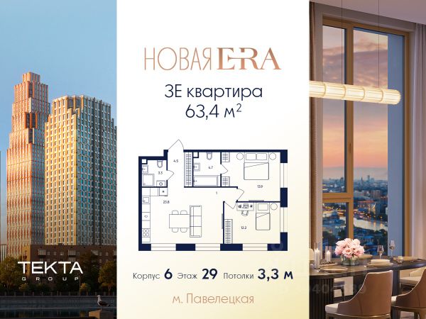 Рассрочка 0% с платежом от 250 000 ₽ в месяц. 3-комн. квартира в ЖК "Era" на 11 этаже в 37 этажном здании Корпус 6. Общая площадь: 61.5 кв.м., жилая: 40.80 кв.м. Высота потолков 3.15 м. Современный премиум-квартал ERA на Дербеневской набережной, формирующий новый архитектурный облик Даниловского района Москвы. Жилой комплекс из шести высотных корпусов выполнен в актуальной интерпретации стиля ар-деко, где ритмичные линии фасадов, натуральный мрамор и изысканные орнаменты создают гармоничный и запоминающийся образ. ERA предлагает жителям единый просторный закрытый двор. Инфраструктура двора включает разнообразные детские игровые площадки, зоны для занятий спортом (воркаут, стритбол, скалодром), а также места для спокойного отдыха — в всесезонном зеленом лабиринте или яблоневом саду. Для озеленения территории планируется высадка около 3000 деревьев и кустарников. Их сохранность обеспечат система автополива, а для комфорта в холодное время года малые архитектурные формы будут оборудованы подогревом. Вторая очередь комплекса включает три корпуса высотой от 37 до 52 этажей. Впечатляющие входные группы, разработанные бюро HAAST, встречают жителей потолками 8,8 метров. В лобби создана атмосфера уюта благодаря индивидуальной ароматизации и музыкальному сопровождению. Здесь же обустроена кофейная зона с профессиональной кофемашиной, а для дополнительного удобства установлен постамат. Высокий стандарт чистоты в любое время года обеспечивают роботы-уборщики, что подчеркивает технологичность комплекса ERA. Для комфортного подъезда такси перед каждым корпусом предусмотрены специальные drop-off зоны. Подземный паркинг на 285 мест. Ключевое преимущество — превосходная локация в развивающемся районе с готовой инфраструктурой. Всего в 5 минутах от Садового кольца, в шаговой доступности от Замоскворечья и набережной Москвы-реки, вы сможете наслаждаться динамикой городской жизни. При этом в самом комплексе на первых этажах будут работать кафе, магазины, салоны красоты и детские образовательные пространства. ERA — это гармоничный симбиоз статусного адреса, безупречного сервиса и приватности для жизни вашей мечты.