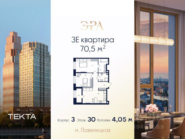 Рассрочка 0% с платежом от 250 000 ₽ в месяц. 3-комн. квартира в ЖК "ЭРА" на 13 этаже в 37 этажном здании Корпус 6. Общая площадь: 61.5 кв.м., жилая: 40.80 кв.м. Высота потолков 3.15 м. Современный премиум-квартал ЭРА на Дербеневской набережной, формирующий новый архитектурный облик Даниловского района Москвы. Жилой комплекс из шести высотных корпусов выполнен в актуальной интерпретации стиля ар-деко, где ритмичные линии фасадов, натуральный мрамор и изысканные орнаменты создают гармоничный и запоминающийся образ. ЭРА предлагает жителям единый просторный закрытый двор. Инфраструктура двора включает разнообразные детские игровые площадки, зоны для занятий спортом, а также места для спокойного отдыха — в всесезонном зеленом лабиринте или яблоневом саду. Для озеленения территории планируется высадка около 3000 деревьев и кустарников. Их сохранность обеспечат система автополива, а для комфорта в холодное время года малые архитектурные формы будут оборудованы подогревом. Вторая очередь комплекса включает три корпуса высотой от 37 до 52 этажей. Впечатляющие входные группы, разработанные бюро ХААСТ, встречают жителей потолками 8,8 метров. В лобби создана атмосфера уюта благодаря индивидуальной ароматизации и музыкальному сопровождению. Здесь же обустроена кофейная зона с профессиональной кофемашиной, а для дополнительного удобства установлен постамат. Высокий стандарт чистоты в любое время года обеспечивают роботы-уборщики, что подчеркивает технологичность комплекса ЭРА. Для комфортного подъезда такси перед каждым корпусом предусмотрены специальные зоны подачи машины и высадки пассажиров. Подземный паркинг на 285 мест. Ключевое преимущество — превосходная локация в развивающемся районе с готовой инфраструктурой. Всего в 5 минутах от Садового кольца, в шаговой доступности от Замоскворечья и набережной Москвы-реки, вы сможете наслаждаться динамикой городской жизни. При этом в самом комплексе на первых этажах будут работать кафе, магазины, салоны красоты и детские образовательные пространства. ЭРА — это гармоничный симбиоз статусного адреса, безупречного сервиса и приватности для жизни вашей мечты.