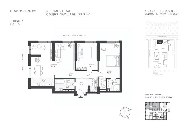 Успейте стать частью уникального проекта премиум-класса на западе Москвы! В продаже квартиры: 1-комнатные от 28,1 м²; 2-комнатные от 61,2 м²; 3-комнатные от 86,6 м²; 4-комнатные от 110,7 м². Первый взнос от 30%! Рассрочка на 2 года без переплат! Крылатское 33 это премиальный жилой комплекс от специализированного застройщика ООО "Сияние". Самый высокий небоскрёб в районе, достигающий отметки в 150 метров и малоэтажный клубный формат высотой от 42 метров на приватной территории площадью 1,4 га. Великолепные виды на излучину Москва-реки, Живописный мост и урбанистический облик города. Эксклюзивные форматы квартир с панорамным остеклением и патио-террасами. Двухуровневый паркинг на 271м/м, премиальные входные группы, ресторан высокой кухни, детский сад и эко-маркет на территории комплекса. Эксклюзивные преимущества: доступ к wellness-центру, коворкингу и клубной гостиной только для резидентов. Над проектом работали именитые российские архитектурные бюро: архитектор проекта бюро "Остоженка", планировочные решения от бюро Александры Федоровой. Расположение Пешком: 5-7 минут - до парка Звезд, Крылатского парка и набережной Москвы-реки; 15 минут - до метро Крылатское Арбатско-Покровской линии; 15 минут - до пристани Крылатская. На автомобиле: 10 минут - до Третьего транспортного кольца; 15 минут - до Садового кольца и Москва- Сити; 20-30 минут - до Аэропорта Внуково; 30-40 минут - до Аэропорта Шереметьево. В 300 метрах от комплекса - удобная транспортная развязка с проспектом Маршала Жукова, обеспечивающая легкий доступ к ключевым магистралям. Благоустройство: Просторная общественная гостиная; Коворкинг с кофе-баром, комфортные переговорные зоны с быстрым wi-fi, зарядными устройствами и библиотекой; Пространство friends lab для организации клубных мероприятий; Wellness-центр с фитнес-залом и массажными кабинетами; Ресторан высокой кухни; Частный детский сад; Детское кафе; Современный детский playhub; Спортивные площадки; Гипоаллергенный сад, безопасные водные пространства, декоративные пруды и сухие фонтаны; Высокоскоростные бесшумные лифты; Разделение зон для резидентов квартала и сервисного обслуживания. Окружение: - парки: Крылатские холмы, природно-исторический парк Москворецкий, Серебряный Бор; - учебные заведения: 5 образовательных комплексов, в которые входят 15 детских садов и 12 школьных корпусов. В удобной транспортной доступности гимназия им. Е. М. Примакова и международный лицей The International School of Moscow; - уникальные спортивные сооружения: гребной канал "Крылатское", легендарный велотрек "Крылатское", "Лата Трэк" для горнолыжников и сноубордистов, ледовый дворец "Крылатское"; - единственный в Москве парк развлечений под открытым небом, включающий более 70 вариантов досуга для любого возраста и времени года. Срок сдачи проекта: 2 квартал 2027 года. Финансирование и эскроу-счет обеспечены банком МКБ.