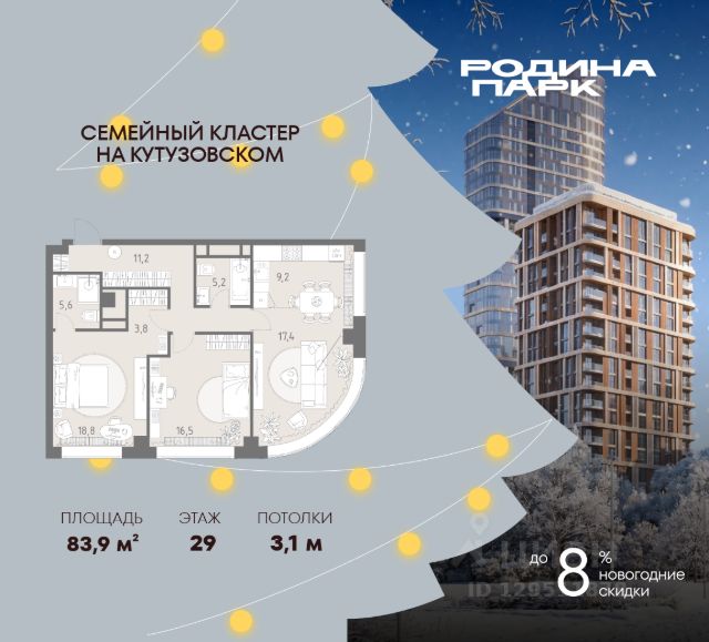 О квартире Продаётся 3-комнатная квартира общей площадью 87.36 кв.м. с отделкой white box. Квартира расположена на 6 этаже корпуса 4.1 в жилом комплексе бизнес-класса "Среда на Кутузовском" в пешей доступности от метро "Кунцевская". О жилом комплексе Комплекс предназначен для людей, которые ставят в приоритет свой комфорт, умеют прислушиваться к себе и понимают, что нужно для внутренней гармонии. Это проект для тех, кто ценит свое время и использует его правильно. Для тех, кто умеет радоваться тому, что есть. "Среда на Кутузовском" — личное место силы и гармонии в двух шагах от центра города. Инфраструктура Жилой комплекс строится в престижном и зеленом Кунцево. Здесь расположены различные торговые центры, престижные учебные заведения (МГУ, РЭУ им. Плеханова, Финансовый университет при Правительстве РФ, РУДН) медицинские клиники. Представлены широкие возможности для поклонников разных видов спорта: от бега в ближайших парках и велозаездов до гребли, баскетбола, футбола, хоккея, фигурного катания и катания на лыжах. На каждый день подойдет World Class с открытым бассейном — он находится всего в 1 минуте от дома. Выбор мест для прогулок также разнообразен: Суворовский парк, лесной массив Крылатских холмов, Москворецкий парк и природный заказник "Долина реки Сетунь". 10 мин пешком: -м. Кунцевская -вся необходимая инфраструктура До 15 мин на авто: -Северо-Западная хорда -Кутузовский проспект -Рублевское шоссе -МКАД -Можайское шоссе Особенности Проект сочетает в себе ритмичность и динамичность, благодаря своей архитектуре, при он этом окружен зеленью и парками. "Среда на Кутузовском" погружает в активный и разнообразный образ жизни, дает вариативные возможности досуга и вдохновляет на новые свершения. —Зоны отдыха у воды —Принцип многослойности в архитектуре —Зона барбекю —Пентхаусы —Умный паркинг —Гайдбук по управлению умным домом —Окна в пол на всех этажах