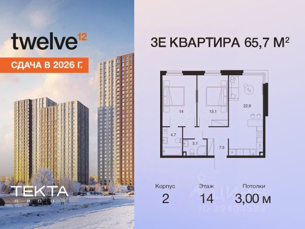 Рассрочка 0% с платежом от 120 000 ₽ в месяц. Сдача уже в 2026 году 3-комн. квартира в ЖК "Twelve" на 12 этаже в 34 этажном здании Корпус 1. Общая площадь: 60.1 кв.м., жилая: 33.30 кв.м. Высота потолков 3.00 м. ЖК Twelve от застройщика Tekta Group — это новый уровень жизни в районе Нагорный в 3-х минутах от станции метро. Проект представляет собой воплощение современной концепции комфортной жизни, где функциональность органично сочетается с эстетикой. Архитектура Twelve создает атмосферу, вдохновляющую на успех и располагающую к позитивным эмоциям. Дом, в котором каждый день будет наполнен уютом, а не рутинной работой и дорожными пробками. Twelve предлагает своим жильцам продуманные планировки, возможность объединения квартир, а также увидеть красоту города через угловое остекление увеличенных окон. Особое внимание уделено комфорту жителей: благоустроенная территория, зеленые насаждения, детские площадки, парковка. ЖК Twelve — это больше, чем просто жилье: это атмосфера умиротворенности, комфорта и гармонии.