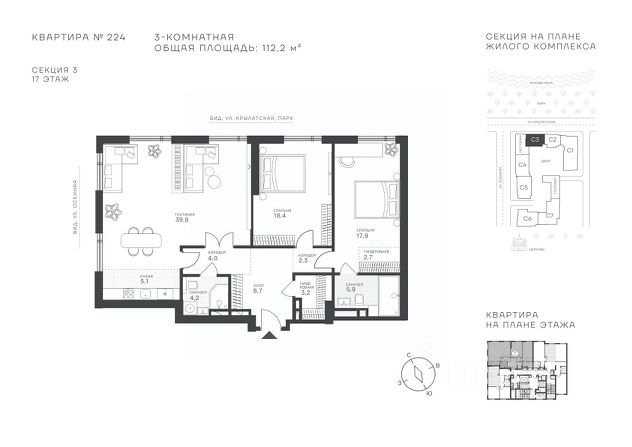 Цена указана с учётом скидки при 100%-й оплате, несубсидированной ипотеке, рассрочке (кроме программы "Рассрочка 0%"). В жилом квартале продаётся 3-комнатная квартира площадью 79.50 кв.м с предчистовой отделкой. Квартира расположена на 7 этаже 48 этажного корпуса 1 в жилом комплексе комфорт класса Левел Звенигородская (компания Level Group/Левел групп). Отличная транспортная доступность - 5 мин. пешком до метро "Звенигородская" (откроется к окончанию строительства); - 18 мин. пешком до станции МЦК "Хорошёво" и станции БКЛ "Народное ополчение"; - 4 мин. на авто до ТТК; - 8 мин. на авто до Садового кольца; - 15 мин. на авто до Кремля. Продуманный архитектурный проект - Концепция от студии Станислава Михаловского, в основу которой легло единение природы и города; - Двухкамерные стеклопакеты в окнах, алюминиевый и ПВХ профиль - в квартирах тепло зимой и прохладно летом; - С верхних этажей открываются панорамные виды на город, Москву-реку, "Москва-Сити" и Москворецкий парк; - Лобби со всеми удобствами: окна в пол, высокие потолки до 4,7 м, лаунж-зоны, колясочные, гостевые санузлы и мойки для лап животных; - Централизованные водонагреватели гарантируют круглогодичную подачу горячей воды в каждую квартиру. Благоустройство Концепция благоустройства разработана совместно с бюро UNK landscape. Высота башен приближается к 200 метрам - они словно касаются неба. Небесный простор проецируется на территорию двора с помощью подсветки, визуально увеличивая пространство и отражаясь в авторских элементах архитектуры. На территории площадью 0,45 га расположатся: - "Облако событий" - место встреч и общения; - "Облако спорта" - всё для поддержания себя в форме; - "Облако принятия решений" - пространство для работы на свежем воздухе; - "Облако спокойствия" - для отдыха в тишине природы; - "Облако игр" - площадки для подростков и самых маленьких. Инфраструктура В жилом комплексе откроется 21 коммерческое помещение: продуктовые лавки, кафе, салоны красоты, службы доставки и творческие студии. Этап 1 включает строительство двухуровневого подземного паркинга. Всего здесь расположится 351 машино-место, включая семейные места, и 264 кладовых помещения. В распоряжении жителей развитая инфраструктура района: 15 супермаркетов, 5 спортивных объектов, 9 медучреждений, 7 детских садов, 4 школы, 3 благоустроенных парка - всё в шаговой доступности. Инженерия Комфортное перемещение внутри домов будут обеспечивать надёжные лифты с доступом в паркинг с жилых этажей. В каждом корпусе предусмотрено до шести кабин, включая сервисные лифты. Попасть на территорию комплекса можно только по единому ключу доступа. Видеонаблюдение установлено на входах в подъезды, в лобби, в общих зонах, на въезде в паркинг. Гости смогут связаться с жителями дома через входные видеопанели, а управлять доступом на территорию можно через видеодомофон или приложение на телефоне.