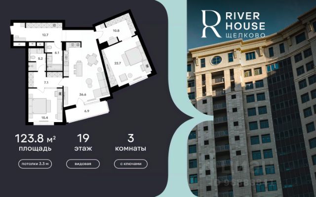 Просторная, светлая семейная квартира в жилом комплексе бизнес-класса RIVER HOUSE Щёлково! Семейная ипотека от 3.5%. Беспроцентная рассрочка. Индивидуальные дисконтные предложения. Дом сдан. Оформление в собственность. Ключи сразу после заключения договора купли-продажи. RIVER HOUSE Щёлково это изысканный жилой проект полноценного бизнес-класса с фокусом на качественное семейное проживание в самом центре города на набережной реки Клязьма. - Оригинальная архитектура, увеличенная площадь остекления, эксклюзивная вечерняя подсветка фасада. - Просторные семейные квартиры с высокими потолками 3.3 м в вариантах черновой, предчистовой и чистовой отделки. - Роскошные трехуровневые пентхаусы с открытыми террасами на кровле. - Лаунж-зона на кровле, где можно устроить уютный вечер с друзьями, отдохнуть и полюбоваться панорамными видами на город. - Вся необходимая инфраструктура и сервисы на первых двух этажах: детский сад, супермаркет, институт красоты, медицинский центр, стоматология, ПВЗ и многое другое. - В каждом подъезде 4 лифта один со спуском в паркинг, лобби с авторским дизайном, консьерж-сервисом и мягкой зоной ожидания. - Круглосуточная охрана, видеонаблюдение, бесключевая система доступа. - Двухуровневый подземный паркинг на 540 машино-мест и 260 кладовых. - Закрытый двор-парк без машин с ландшафтным дизайном, детскими и спортивными площадками, летним амфитеатром и собственным спуском к набережной. - Шаговая доступность ко всей инфраструктуре центра города: школы, детские сады, гимназии, кафе и рестораны, кинотеатр, перинатальный центр. - Три благоустроенных парка, в один из которых - Солнечные часы - можно спуститься со двора дома. RIVER HOUSE Щёлково это дом-впечатление и особый статус, которые останутся вашим детям и станут частью фамильной истории.