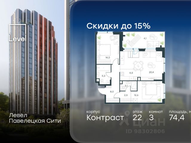 3-к квартира квартира в премиальном комплексе ХАЙ ЛАЙФ на 19-м этаже в 32 этажном здании. Общая площадь 76.6 кв. м. ХАЙ ЛАЙФ - премиальный проект компании "Пионер", расположенный в 5 минутах от Садового кольца, вблизи исторического Замоскворечья. Авторская архитектура от бюро ADM. Панорамные окна и изящные эркеры открывают виды на Кремль, МГУ, Москва-Сити, Дом Музыки и набережные реки. 70% видовых квартир. Инфраструктура и сервис отеля 5*: • Дизайнерские лобби • Частный кинозал • Библиотека с камином • Двухуровневый двор-парк 2 га с хвойным лесом и террасами • Залы для йоги и занятий спортом • Массажный кабинет, СПА и бьюти-зоны • Консьерж-сервис Технологии и инженерия: • Центральная система кондиционирования • Дополнительная вентиляция помещений • Буферная мусорокамера • Обеззараживание воздуха • Мониторинг качества воды с дополнительной доочисткой • Дополнительная шумоизоляция • Автоматизированная система передачи данных в УК Системы безопасности: • Датчики движения • Круглосуточное наблюдение • Система доступа с распознаванием лиц • Приложение для наблюдения за квартирой • Система пожарного обнаружения • Датчики дыма и протечек За 24 года на рынке недвижимости компания "Пионер" реализовала более 30 проектов. Сегодня "Пионер" - девелопер премиальной недвижимости с 4 проектами класса премиум и делюкс. Звоните, и мы с удовольствием расскажем все подробности о нашем замечательном проекте и условиях покупки. Продажа от застройщика.