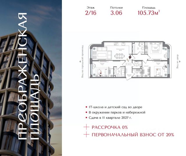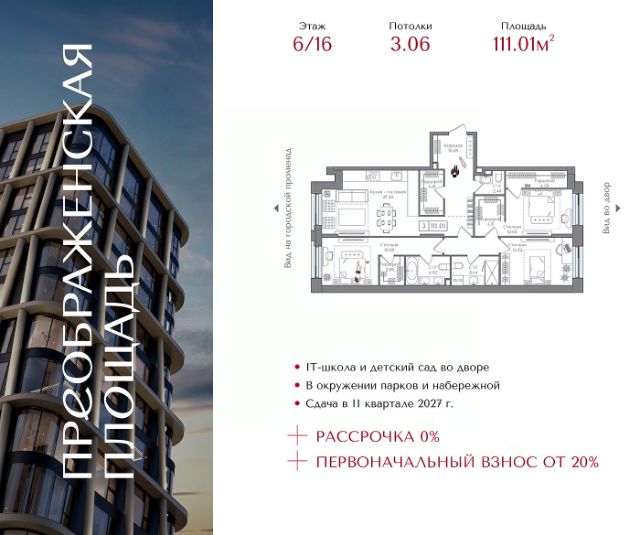 Рассрочка 0% с первоначальным взносом от 20% Квартира на 2 этаже в жилом комплексе премиум-класса "Преображенская площадь". Общая площадь: 79 кв.м. Проект премиум-класса в историческом районе Москвы. До метро "Преображенская площадь" 3 минуты пешком. Квартиры сдаются без отделки и в свободной планировке, чтобы жители могли оформить пространство с учетом своей индивидуальности. Высота потолков от 3,15м, широкоформатное остекление, 3-5 квартир на этаже. Система Умный дом. Дизайнерские лобби. Внутренний двор 1,5 га функциональное и безопасное пространство для игр, работы и занятий спортом. Пешеходный променад для прогулок. Дома переменной этажности. Есть подземный паркинг. Жилой комлекс находится в окружении парков Сокольники, Черкизовский, Измайловский, заповедника Лосиный остров и ВДНХ, а также вблизи пешеходной набережной. Комфортная удаленность от центра: 7 минут на автомобиле до ТТК, 8 минут до Садового кольца, 25 минут до Кремля.