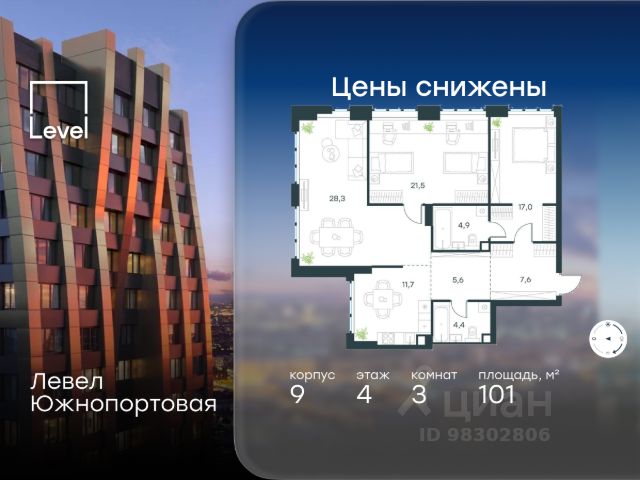 Предложение месяца от застройщика: - Скидка до 10% на ограниченный пул квартир - Рассрочка 0% на 1 год - Семейная ипотека без удорожания, ставка 4% - Ипотека для всех на весь срок, ставка 11,89% Продаётся 3-комнатная квартира от застройщика ГК "КОРТРОС" в жилом комплексе бизнес-класса УЛЬТИМА Сити. Квартира расположена на 39 этаже 52 этажного корпуса 2. Общая площадь 98,10 м². Без отделки. УЛЬТИМА Сити — жилой комплекс бизнес-класса в перспективном районе на юго-востоке Москвы. На его территории появятся 9 башен на 756 этажей, двухуровневый подземный паркинг, собственная инфраструктура, включая детский сад и школу. Всего девелопер благоустроит территорию в 2,6 га. Ближайшая станция метро — "Южный порт". Она откроется в 2028 году и будет находиться в 2-х минутах ходьбы. А прямо напротив расположится остановка водного автобуса-электрохода "Синичка". Дорога от квартала будет удобна и для автомобилистов: - до Кремля — 12 км - до МКАД — 12 км - до выезда на ТТК — 3 км - до Садового кольца — 8 км В двух корпусах первой очереди УЛЬТИМА Сити этажностью 45 и 52 реализуется 1 079 квартир с продуманными, рациональными планировочными решениями. В ассортиментной линейке представлены однокомнатные квартиры от 28,2 до 61 кв. м, двухкомнатные лоты от 44,3 до 95,4 кв. м, квартиры с тремя (71 — 115,57 кв. м) и четырьмя спальнями (106,6 — 114,97 кв. м). В экспозиции также есть квартиры с террасами, лоджиями, тремя и четырьмя санузлами, а также с функциональными нишами-кладовыми на кухнях. Запроектированы и эксклюзивные двухуровневые резиденции со вторым светом, в том числе с видом на Москву-реку, площадью от 77,7 до 141,9 кв. м. В рамках проекта запланировано строительство 9 корпусов, школы на 500 учащихся и детского сада на 225 мест. Еще будет создана продуманная инфраструктура для жителей: детские и спортивные площадки, амфитеатр для мероприятий, беседки и теплицы для садоводства, коворкинг, детский клуб и ресторан с открытой террасой. Доступ в жилой комплекс осуществляется по биометрическому контролю. Вокруг квартала будет приватная территория с видеонаблюдением и консьерж-сервисом 24/7. Лобби корпусов будут иметь двойные выходы: на улицу и во внутренний закрытый двор.