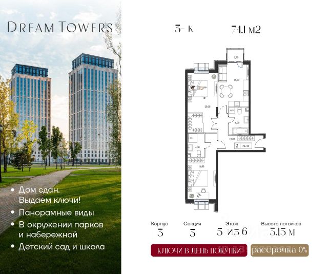 Квартира в рассрочку от девелопера. Первый взнос от 30%, максимальный срок рассрочки - 9 месяцев. Подробные расчёты можно получить в доме продаж. Прямая продажа от застройщика. В жилом квартале, расположенном в Даниловском районе Москвы, продаётся 3-комнатная квартира площадью 126.50 кв.м без отделки. Квартира расположена на 16 этаже 19-этажного дома, корпус Line 10, в жилом квартале бизнес-класса Foriver. Foriver - самый близкий к Кремлю квартал на своей пешеходной набережной Москвы-реки протяжённостью 1 км. Он расположен в новом удобном районе в центре, который постоянно улучшается. Расстояние до Кремля - 4 км, до Садового кольца - 1,7 км. Квартал продуман до мелочей. В нём обустроен двор с газонами и прогулочными аллеями, видовыми площадками для отдыха с деревянными шезлонгами и перголами. Резиденты будут наслаждаться эффектной панорамой Москвы-реки с шестиметровой возвышенности стилобата. Для юных жителей в Foriver создана собственная инфраструктура, в том числе пять развивающих площадок в закрытом дворе. Для поддержания здорового образа жизни на территории Foriver предусмотрены фитнес с 25-метровым бассейном и воркаут-зоны. Рядом расположен спортивный кластер им. Эдуарда Стрельцова с тремя футбольными полями и стадионом на 15 тыс. зрителей. В Foriver представлены готовые просторные квартиры по привлекательной цене: лоты с видами на Москву-реку; пентхаусы с каминами, террасами и потолками высотой до 6,8 м; варианты на втором этаже с террасами; таунхаусы с отдельными входами. О жителях и доме заботится Служба комфорта Smineх, которая предлагает сервис уровня 5-звёздочных отелей и сохраняет изначальный облик и концепцию дома. Девелопер проекта - Sminex, который создаёт самую комфортную и престижную среду для жизни и работы. Компания занимает лидирующую позицию на рынке элитной и премиальной недвижимости: площадь проектов в стадии строительства и проектирования превышает 900 тыс. кв. м. Стоимость квартиры - 88 730 000 Р. Дом сдан. Более подробную информацию по объекту уточняйте по телефону и в доме продаж.