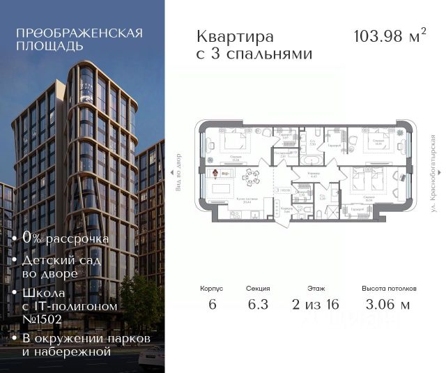 14333 Скидка на паркинг 300 000 рублей! Дизайн проект в подарок! Возможна рассрочка! Предлагается к продаже уникальная евротрёхкомнатная квартира с кухней-гостиной 35 м2 в жилом комплексе Бизнес класса - Вдохновение, расположенном в центральной части района Богородское. ЖК построен в 2023 году, состоит из двух корпусов переменной этажности: из корпуса А высотой от 7 до 10 этажей и корпуса Б от 6 до 9 этажей. Дом небольшой, всего 212 квартир. На площадке от 4 до 6 квартир. Высота потолков - 3,2 метра. Квартира находится на 8 этаже, имеет нестандартную и интересную планировку: Общая площадь 120,3 м2, кухня-гостиная 35 кв.м. с выходом на лоджию, 3 изолированные спальни -14 м2 , 18 м2 , 12м2, 2 санузла, один из них с окном, гардеробная при входе, при желании можно оборудовать открытую террасу. Окна выходят на три стороны. Квартира в данный момент свободной планировки, без отделки, для Вас разработано дизайнерское решение возможного варианта с кухней-гостиной, но можно, если это необходимо, сделать гостиную чуть меньше и добавить еще одну изолированную комнату, дизайн-проект в подарок покупателю, который будет доработан специально для Вас, в соответствии с Вашими пожеланиями. Если это не потребуется, то просто предоставим скидку. Фасад дома стильно задекорирован фибробетоном и клинкерной плиткой. Малоэтажная застройка делает район приятным и удобным для проживания, поскольку трафик на дорогах даже в часы пик низкий, при этом в пешей доступности от комплекса находятся две станции метро: до Бульвара Рокоссовского - 20 минут, до Преображенской площади - 24 минуты, на машине есть несколько вариантов маршрутов выезда на основные магистрали: на проспект Мира можно попасть по Ростокинскому проезду, в центр ведёт Большая Черкизовская улица, но местные жители используют и набережную реки Яузы. В пешей доступности вся необходимая инфраструктура: школа 1797 и детский сад Теремок, детская городская поликлиника 28 и консультативно-диагностический центр 2, рядом магазины Дикси, Пятёрочка, Магнит, Красное/Белое, пункт выдачи заказов WB и Озон, стадион Спартаковец. Закрытый двор дома имеет систему видеонаблюдения. Для детей во дворе имеется детская площадка с горкой и качелями, скамейками для отдыха. В каждой секции есть место консьержа, колясочная и туалет. Входные группы оформлены в приятной нейтральной гамме. Стены оштукатурены, окрашены и облицованы керамогранитной плиткой. В распоряжении жильцов пассажирский и грузовой лифт. Подземный паркинг рассчитан на 123 места, цена 2 500 000, при по покупке квартиры скидка на паркинг 300 000 рублей. Квартира продается в прямой продаже, никто не зарегистрирован, полная стоимость в договоре.