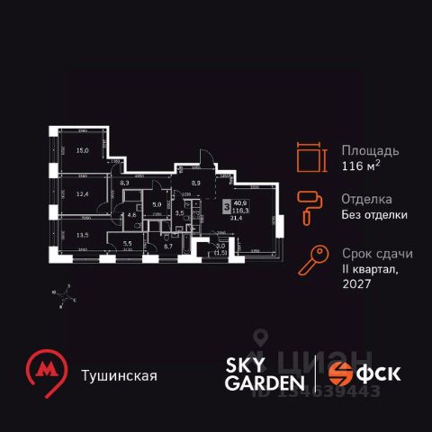 Прямая продажа от застройщика. Продаётся 3-комнатная квартира общей площадью 79.40 м² с предчистовой отделкой в ЖК City Вау, квартале North, на 2-м этаже 26 этажного дома. Концепция жилого комплекса City Вау - настоящий город в городе с отлично развитой инфраструктурой и собственной благоустроенной набережной. На территории жилого комплекса расположено пять кварталов - Atlantic, Pacific, Indian, North, Cliff. Жилой квартал City Вау отличается оригинальной концепцией и выделяется среди других проектов такими характеристиками как: - Архитектура, - Виды из окон, - Природное окружение, вызывая гордость у жителей и восхищение у прохожих. Вся жизнь района Покровское-Стрешнево строится вокруг водных объектов: - Пойма реки Сходни с уникальной экосистемой, - Речка Химка и Химкинское водохранилище, - Москва-река, - Канал имени Москвы. Кругом вода, и местные с удовольствием этим пользуются. А сразу за рекой - центр водного спорта в Строгино с вейк-парком и яхт-клубами. Помимо воды, здесь очень много зелени: - Рядом Сходненский ковш памятник природы, естественный амфитеатр глубиной 40 метров; - Парк при усадьбе Братцево с фруктовым садом; - Дубовая роща "Маяк", - Алешкинский лес; - Лесопарк Покровское-Стрешнево с пляжами и бобрами. Главные транспортные артерии района: - Волоколамское шоссе, - Таганско-Краснопресненская линия метро и МЦД-2. Всего за 20 минут можно добраться до центра на машине или метро, а МЦД связывает ЖК City Вау с северными, восточными и юго-восточными районами. Компания MR предлагает своим клиентам специальные условия приобретения квартир в рамках программ ипотечного кредитования от банков-партнеров.