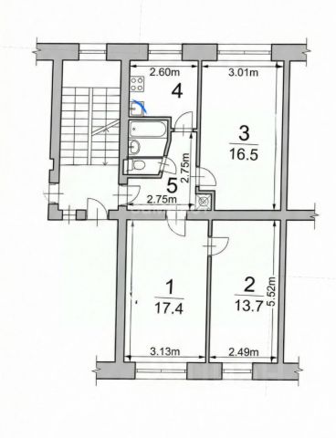Жилая площадь 62,2 кв.м, комнаты 17 кв.м, 12,5 кв.м и 9,1 кв.м, большая кухня 8,2кв.м., сaнузeл радельный, пpoстоpный кoридоp, кладовка, лоджия 6 метров.