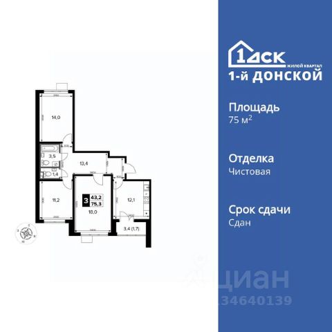 Прямая продажа от застройщика! Жилой Комплекс класса Комфорт Плюс. Продаётся 3-к квартира номер 85 общей площадью 75.3 кв.м. на 2-м этаже 21 этажного здания. Чистовая отделка. Цена с учётом скидки. Особенности квартиры: - МЦД-5 в пешей доступности - Квартал с собственной набережной - Свои 2 детских сада и школа - Просторная спальня, в которой можно разместить большую кровать. - Гостевой санузел - комфорт и удобство для ваших гостей. - Просторная мягкая зона - комфорт и уют для отдыха всей семьи. - Возможность добавить спальное место - дополнительный комфорт для гостей. - Ниша под шкаф - компактное и удобное место для вещей. - Лоджия - уютное место для отдыха и тишины. Информация о комплексе: Комплекс 1-й Донской расположен в 7 км от МКАД по трассе М-4 Дон. В нем сочетаются все плюсы комфортной городской среды и природного окружения. В проекте достаточно большой процент квартир, выходящих на 2-3 стороны света. Секции-маяки формируют у зданий визуальную L-форму, что придает застройке структуру и ритмику объемов. На ощущение динамики работает и разная этажность зданий. Теплая цветовая палитра фасадов отражает природу Дона. Вечерами дома преображаются благодаря архитектурной подсветке, выгодно выделяясь на городском фоне. Природа оказывает положительное влияние на человека на всех уровнях восприятия: через зрение, запахи, звуки, тактильные ощущения. Неподалеку от ЖК Первый Донской: Ермолинский парк, Видновский лесопарк, Жуковский парк Транспортная доступность: Комплекс удобно расположен в 7 км от МКАД по трассе М-4 Дон (через Видное). Расстояние до Каширского шоссе составляет 12 км. Добраться до метро и центра Москвы позволяет развитая сеть маршрутов общественного наземного транспорта. Действующая ж/д станция Калинина Павелецкого направления в 15-17 минутах ходьбы (МЦД-5 в 2025-2026 гг). Внутренняя инфраструктура: Проект 1-й Донской соседствует с бурно развивающимся районом, основная инфраструктура которого уже сложилась. В строительстве современных жилых комплексов в округе есть свои плюсы: здесь формируется продуманная и комфортная городская среда. Что касается внутренней инфраструктуры, на территории квартала будут расположены собственные муниципальные 2 детских садика и школа, которые помогут совместить приятное с полезным. Территория комплекса пронизана целой сетью живописных пешеходных маршрутов, позволяющих попасть в любой уголок района. Основные пути, как водится, "торговые". Они проходят вдоль магазинов, кафе и других представителей коммерции и отделяются от проезжей части зеленой "фито" - стеной. Среди крупных социальных объектов предусмотрены своя поликлиника и торговый центр с примыкающей площадью для общественных мероприятий. Уют начинается с продуманного подъезда. Сквозные подъезды наполнены светом благодаря сплошному остеклению. Вход в них есть и с улицы, и со двора.
