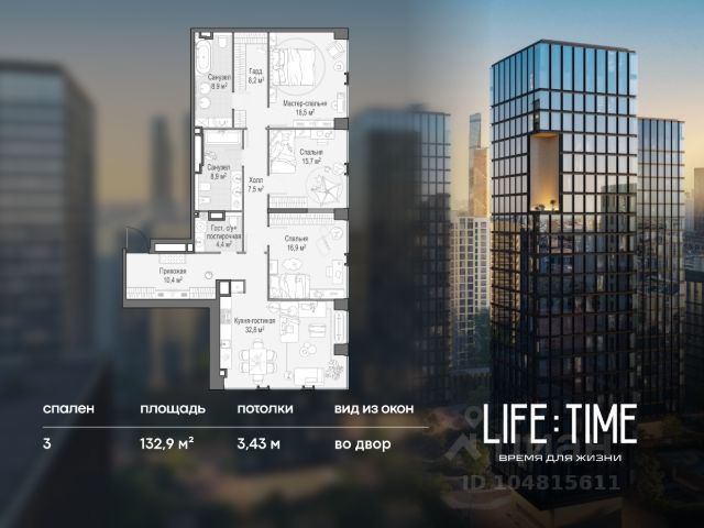Продаётся 3-комнатная квартира евроформата в ЖК HEADLINER, общей площадью 89,6 кв. м, на 41 этаже. Высота потолков 3 м. Это просторная, светлая квартира евроформата подойдет для большой семьи, в ней три полноценные спальни и кухня-гостиная. В квартире предусмотрено 2 санузла. Окна в квартире выходят на разные стороны, в том числе на панораму Москвы-Сити и центра столицы. Квартира продается без отделки. Дом сдан. Квартал HEADLINER находится в Пресненском районе ЦАО, рядом с м. "Шелепиха". В непосредственной близости Москва-Сити. Рядом находятся парк Причальный и Шелепихинская набережная. За 5-10 минут на автомобиле можно добраться до парков Фили, Красногвардейские пруды, Красная Пресня и парка Победы. В пешей досягаемости - ТРЦ "Афимолл Сити", ТРЦ "Филион", ТРЦ "Европейский", World Class, а также вся инфраструктура ММДЦ "Москва-Сити". На территории ЖК расположен филиал частной аккредитованной школы полного дня "Путь к успеху". В непосредственной близости расположены лучшие школы ЦАО: ГБОУ "Романовская школа", физико-математическая школа 56 им. академика В.А. Легасова, школа с углубленным изучением английского языка 1232 "На Кутузовском". Особенности ЖК: - Потрясающие видовые характеристики открываются на "Москва-Сити", Москву-реку и панораму центра столицы; - 8 минут пути до набережной Тараса Шевченко с живописными видами на Headliner и Деловой центр; - Разная высота корпусов: от 5 до 51 этажа с уникальным внешним видом; - Потолки от 3 м; - Доступны варианты как с отделкой white box, так и без нее; - 80% квартир имеют ширкоформатные окна; - Вместительный двухуровневый подземный паркинг с кладовыми; - Лаунж-зоны с каминами и стильной мебелью; - Колясочные и гостевые уборные; - Концепция "дворы без автомобилей"; - Консьерж-зоны в подъездах; - Видеонаблюдение, круглосуточная охрана.