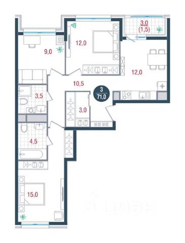 Продается трехкомнатная квартира 271 в новостройке ЖК "Русич Кантемировский" по адресу Москва, ЮАО, Царицыно, Кавказский бульвар, вл. 51/2, корп. 2. Общая площадь квартиры - 71.00 кв. м., этаж 19 из 26, секция 2. Тип проекта, по которому построен дом - монолит, компания-застройщик - Концерн "Русич". Стоимость квартиры - Р. Срок сдачи - 1 квартал 2026. Более подробная информация по телефону. Современный жилой комплекс класса бизнес-лайт "РУСИЧ Кантемировский" удачно расположен в обжитом районе Царицыно всего в 15 минутах пешком до двух станций метро. Удобное расположение рядом с трассой ЮВХ и Варшавским шоссе позволяет добраться до МКАД всего за 17 минут, а развитая инфраструктура района вместе с комплексным подходом к наполнению жилого квартала делает это место идеальным для жизни. Проект включает в себя шесть элегантных корпусов, высота которых варьируется от 17 до 32 этажей. Каждый фасад - это результат авторской архитектурной мысли, а дизайнерские лобби встречают вас атмосферой уюта и стиля. Премиальные отделочные материалы и передовые инженерные решения подчеркивают высокое качество жизни в этом комплексе. Концепция "двор без машин" создает безопасную и спокойную атмосферу: внутренние пространства огорожены и оснащены видеонаблюдением, а для автолюбителей предусмотрен современный паркинг на 291 машино-место. Дворы комплекса обещают стать настоящим оазисом: здесь появятся живописные прогулочные аллеи, уютные зоны для пикников и разнообразные спортивные и детские площадки. Центральная площадь с фонтаном, перголами и цветочными композициями станет излюбленным местом для встреч и отдыха. Еще одним значительным преимуществом является собственная школа на 900 мест и два детских сада, вмещающие 400 малышей. Вам не придется тратить много времени на покупки - рядом уже работают супермаркеты, рестораны и спортивные клубы, предлагая все необходимое для комфортной жизни. Жилой комплекс "РУСИЧ Кантемировский" гармонично сочетает в себе преимущества городской жизни и природную тишину. Всего в нескольких шагах от вашего нового дома раскинулся живописный заповедник "Царицыно", а также парки "Сосенки" и "Аршиновский", где можно насладиться свежим воздухом и спокойствием природы.