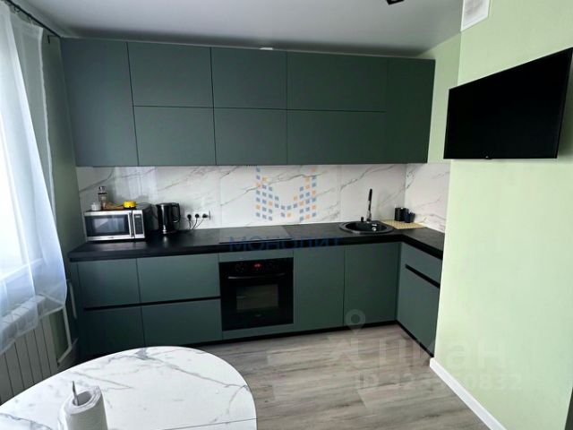 Квартира расположена на комфортном 9-м этаже 25-этажного дома. Квартира светлая, с большими окнами, в идеальном состоянии. Общая площадь: 81.4 кв.м.: просторная гостиная с кухонной зоной площадью 23,2 кв м, кухонный гарнитур выполнен под заказ, включая каменную столешницу - обеденный стол, встроенная импортная техника BOSCH (посудомойка, духовой шкаф, микроволновая печь, варочная индукционная панель). Гостиная отделена от остальной зоны стильной амбарной дверью, две отдельных комнаты: спальня (13.4 кв.м.) и детская (23.9 кв. м, объединенная из 2х комнат).