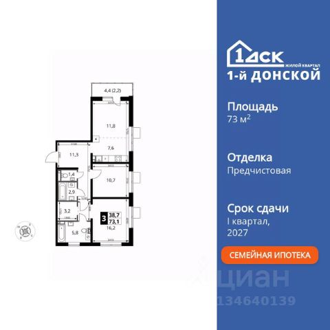 ДОПОЛНИТЕЛЬНАЯ СКИДКА ДО 10% В ОФИСЕ ПРОДАЖ! Прямая продажа от застройщика! Жилой Комплекс класса Комфорт Плюс. Продаётся 3-к квартира номер 861 общей площадью 66.1 кв.м. на 19-м этаже 24 этажного здания. Предчистовая отделка. Особенности квартиры: - МЦД-5 в пешей доступности - Квартал с собственной набережной - Свои 2 детских сада и школа - Просторная спальня, в которой можно разместить большую кровать. - Угловая планировка - больше пространства для ваших идей. - Раздельный санузел - больше удобства для всех членов семьи. - Евроформат - просторное и удобное жилье с отличной планировкой. - Кухня-гостиная - идеальное пространство для встреч с близкими. - Лоджия - уютное место для отдыха и тишины. Квартира с предчистовой отделкой (White box). Вам не придется заниматься черновыми и трудоёмкими работы, а чистовую отделку и дизайн - сделайте на свой вкус. Информация о комплексе: Комплекс 1-й Донской расположен в 7 км от МКАД по трассе М-4 Дон. В нем сочетаются все плюсы комфортной городской среды и природного окружения. В проекте достаточно большой процент квартир, выходящих на 2-3 стороны света. Секции-маяки формируют у зданий визуальную L-форму, что придает застройке структуру и ритмику объемов. На ощущение динамики работает и разная этажность зданий. Теплая цветовая палитра фасадов отражает природу Дона. Вечерами дома преображаются благодаря архитектурной подсветке, выгодно выделяясь на городском фоне. Природа оказывает положительное влияние на человека на всех уровнях восприятия: через зрение, запахи, звуки, тактильные ощущения. Неподалеку от ЖК Первый Донской: Ермолинский парк, Видновский лесопарк, Жуковский парк Транспортная доступность: Комплекс удобно расположен в 7 км от МКАД по трассе М-4 Дон (через Видное). Расстояние до Каширского шоссе составляет 12 км. Добраться до метро и центра Москвы позволяет развитая сеть маршрутов общественного наземного транспорта. Действующая ж/д станция Калинина Павелецкого направления в 15-17 минутах ходьбы (МЦД-5 в 2025-2026 гг). Внутренняя инфраструктура: Проект 1-й Донской соседствует с бурно развивающимся районом, основная инфраструктура которого уже сложилась. В строительстве современных жилых комплексов в округе есть свои плюсы: здесь формируется продуманная и комфортная городская среда. Что касается внутренней инфраструктуры, на территории квартала будут расположены собственные муниципальные 2 детских садика и школа, которые помогут совместить приятное с полезным. Территория комплекса пронизана целой сетью живописных пешеходных маршрутов, позволяющих попасть в любой уголок района. Основные пути, как водится, "торговые". Они проходят вдоль магазинов, кафе и других представителей коммерции и отделяются от проезжей части зеленой "фито" - стеной. Среди крупных социальных объектов предусмотрены своя поликлиника и торговый центр с примыкающей площадью для общественных мероприятий. Уют начинается с продуманного подъезда. Сквозные подъезды наполнены светом благодаря с
