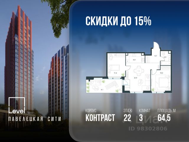 В Даниловском районе столицы (ЮАО) продаётся 3-комнатная квартира площадью 57.70 кв.м без отделки. Квартира расположена на 2 этаже 27-этажного корпуса 'Горизонт' в жилом комплексе бизнес-класса Павелецкая Сити. Высота потолков 3.00м. Престижная локация "Павелецкая Сити" - жилой комплекс бизнес-класса, расположенный в престижном Даниловском районе Москвы, на границе с ЦАО. Проект находится в историческом центре города в окружении парков, Москвы-реки и сформированной инфраструктуры. В пределах 20 минут пешком есть 3 станции метро, а в 5 минутах езды на авто - ТТК и Садовое кольцо. - 15 мин. пешком до метро "Павелецкая"; - 20 мин. пешком до станций "Тульская" и "Серпуховская"; - 8 мин. на авто до Кремля; - 10 мин. на авто до парка Горького и парка "Зарядье"; - 20 мин. на авто до башен "Москва-Сити". Авторская архитектура Архитектурная концепция разработана бюро СПИЧ по индивидуальному проекту. Облик корпусов I и II очередей отсылает к стилистике архитектуры классического Нью-Йорка и золотой эпохи Голливуда. Корпуса IV очереди вдохновлён эстетикой ар-деко в её современном переосмыслении. Благодаря линейному расположению корпусов из большинства квартир будут открываться потрясающие виды на исторический центр города и Москву-реку. Дизайнерские лобби Изысканные интерьеры лобби жилого комплекса отсылают к классическим фильмам золотой эпохи Голливуда. Классика в "Павелецкая Сити" - не имитация, а современное осмысление лучшего в этом стиле. В каждом вестибюле оборудованы стойки ресепшен, комфортные зоны ожидания, гостевые санузлы, мойки для лап животных, колясочные. В корпусах по 3-4 лифта, включая сервисный, с прямым доступом в паркинг. Площадь лобби - от 47,9 до 114,9 кв. м, высота потолков - до 5,46 м. Благоустройство и инфраструктура Для создания благоустройства было приглашено 2 ведущих бюро - ADM и GAFA. Разноуровневое пространство вмещает всё необходимое для качественного досуга: игровые площадки для детей всех возрастов, тропы здоровья для пеших прогулок, крытые аллеи с качелями, места для работы на свежем воздухе, многофункциональные спортивные площадки - воркаут-зоны, столы для пинг-понга, зоны командных игр. Общая площадь закрытого двора - 4,63 га. Комфорт - это когда рядом всё, что нужно для жизни. На первых этажах и в стилобатной части корпусов "Павелецкая Сити" размещены 85 коммерческих помещений, где откроются супермаркеты, кафе, пекарни, аптеки и другие службы сервиса. В составе проекта также предусмотрены собственный фитнес-клуб и развивающий центр Letovo Kids, а также школа на 720 мест и детский сад на 175 мест. Технологии и безопасность - Wi-Fi в лобби и на придомовой территории; - Автоматизированная система контроля и учета ресурсов; - Круглосуточное видеонаблюдение и охрана; - Круглосуточная связь с охраной через приложение, телефон или кол-центр; - Контроль доступа по биометрической системе Face-ID; - Усиленный сотовый сигнал в лифтах и паркинге; - Распознавание номеров автомобилей при въезде/выезде в/из паркинга.