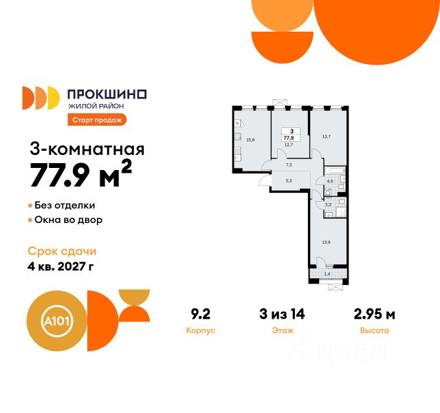 Продается трехкомнатная квартира без отделки в 9 фазе города-парка "Первый Московский". Общая площадь квартиры - 86,7 кв. м, этаж 2 из 19. Срок сдачи - 4 квартал 2026 года. Тип дома - монолитный. Цена указана при 100% оплате. Новый корпус состоит из 2х секций, без отделки. Город-парк "Первый Московский" расположен всего в 7 км по Киевскому шоссе (Новая Москва). Из города-парка прямой выезд на Киевское шоссе и трассу Солнцево-Бутово-Варшавское шоссе. ТРАНСПОРТНАЯ ДОСТУПНОСТЬ: - 5 мин. на личном автомобиле или 10 мин. на автобусе 189, 147, 193 до станции метро "Филатов Луг" - 5 мин. на личном автомобиле или 12 мин. на автобусе 863 до станции метро "Саларьево" - 6 мин. на личном автомобиле или 15 мин. на автобусе 333 до станции метро "Рассказовка" РАЗВИТАЯ ИНФРАСТРУКТУРА В ОКРУЖЕНИИ: - общеобразовательная школа 2120 корпуса д1, д7, ш1-ш5 - детский сад 2120 корпуса д2, д9 - школа искусств - городская больница, детская поликлиника, филиал 5 - подстанция скорой помощи 58 и пожарно-спасательный центр 313 - отдел полиции, отдел ГИБДД - торговые центры Столица и Новомосковский - стадион, каток, бассейн - кафе, продуктовые магазины, аптеки, фитнес центры, салоны красоты и пр. БЛАГОУСТРОЙСТВО: - детская площадка для малышей и детей до 12 лет - места отдыха для родителей в непосредственной близости - озеленение территории с учетом зонирования - максимальная близость корпуса к пару Филатов луг ОСОБЕННОСТИ АРХИТЕКТУРЫ: - безбарьерные входные группы - колясочные в каждой входной группе - коммерческие помещения на 1 этаже в двух секциях - кладовые помещения расположены на жилых этажах и на -1 этаже - в каждой секции корпуса по 3 лифта: 2 пассажирских, 1 грузовой - на фасадах предусмотрены корзины для установки внешних блоков кондиционеров - видеонаблюдение установленное в холлах первых этажей, у подъездов и прилегающей территории АВТОРСКИЙ ДИЗАЙН: Входные группы выполнены по авторскому дизайну, оснащены системой "тёплый пол". В каждой входной группе будет располагаться комфортабельная зона ожидания, почтовые ящики с ячейкой для спама, колясочная, акцентные пуфы и столик.