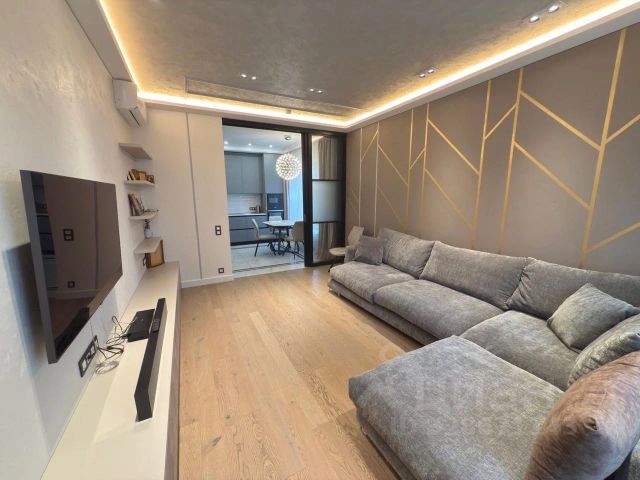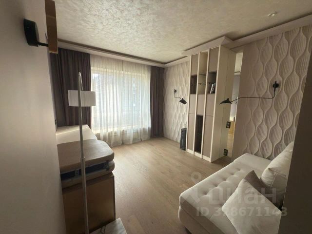 Планировка: просторная гостиная 15 м², совмещенная с кухней 6 м², две изолированные спальни по 10 м². Застеклённый балкон, совмещённый санузел.
