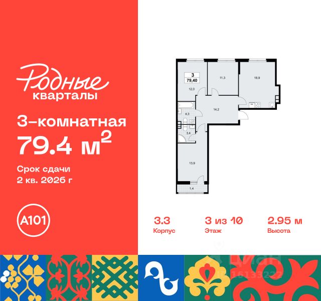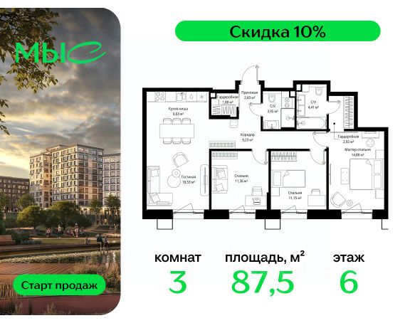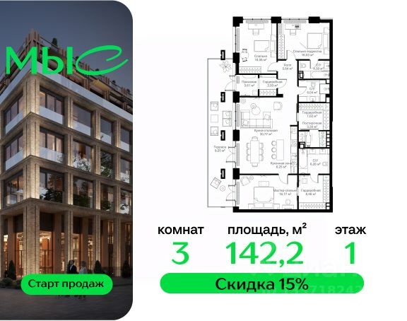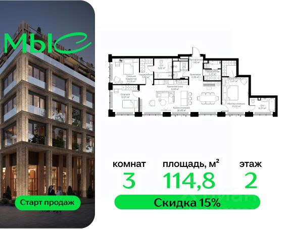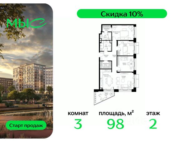 Прямая продажа от застройщика. Продаётся 3-комнатная квартира общей площадью 104.93 м² без отделки в премиальном жилом комплексе "МЫС" на 8-м этаже 12 этажного дома. Квартира расположена в корпусе "Сибирь". Проект МЫС — это, прежде всего, идеальное место для семей. В рамках проекта построят государственную школу, два детских сада и дворец спорта площадью 20 000 м2 с термальным комплексом, выплывным бассейном, фитнес-залом, теннисными, сквош и падел кортами и секциями для детей. На территории площадью, сравнимой с тремя парками Зарядье, появятся кафе и рестораны, пруд с набережной, спортивные и детские площадки, скейт-парк, лыжные и веломаршруты. Расположение: - 2 минуты до скоростной трассы М1 и Минского шоссе; - 10 минут до МКАД; - 15 минут до МЦД Лесной Городок - 20 минут до делового центра "Москва-Сити"; - 28 минут до аэропорта "Внуково". Благоустройство: - велосипедные и лыжные маршруты; - собственная набережная и парк; - лаунж-зоны в окружении природы; - беседки у очага; - дворец спорта площадью 20 000 м²; - термальный комплекс с тремя бассейнами; - 4 теннисных и падел-корта; - 6 сквош-кортов; - многофункциональный спортзал; - скейт-парк; - просторная площадь для прогулок с фонтаном; - детский клуб с творческими секциями; - гастро-доминанта; - кафе у пруда, рестораны, ритейл. Окружение - соседство с лесным фондом; - школа на 1250 мест и 2 детских сада на 350 и 255 мест; - Дубковский и Подушкинский леса, парк "Рассказовка", Мещерский парк. Действуют специальные условия при 100% оплате, подробности уточняйте у менеджера в офисе продаж.