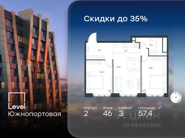 Цена указана с учётом скидки при 100%-й оплате, несубсидированной ипотеке, рассрочке (кроме программы "Рассрочка 0%"). В северной части района Печатники продается 3-комнатная квартира площадью 63.50 кв.м без отделки. Квартира расположена на 8 этаже 16-этажного корпуса 11 в жилом комплексе комфорт-класса Level Южнопортовая (компания Level Group/Левел групп). Отличная транспортная доступность: - 10 мин. пешком до станции метро "Кожуховская"; - 20 мин. пешком до станции МЦК "Дубровка"; - 3 мин. на авто до ТТК; - 13 мин. на авто до Садового кольца; - 15 мин. на авто до Бульварного кольца. Продуманный архитектурный проект: - авторская архитектура от бюро СПИЧ; - уникальные виды на реку, парки и достопримечательности города; - высота потолков в квартирах до 6 м; - окна высотой до 1,87 м с высоким коэффициентом сопротивления теплоотдаче. Расположение: Level Южнопортовая строится в северной части района Печатники - самой приближенной к центру. Здесь будет сформирован новый район "Южный порт", где построят крупный жилой и общественно-деловой центр, аналогичный Москва-Сити. В течение 10-12 лет в этом месте появятся не только жилые дома, но и развитая инфраструктура для жизни и работы. А еще совсем рядом находится набережная Москвы-реки, где планируется построить причалы для речных трамвайчиков и канатную дорогу. Уже сейчас вокруг жилого комплекса работают десятки магазинов и торговых центров, рядом расположено 6 парков, среди которых музей-заповедник "Коломенское". В 10 минутах пешком - 2 муниципальных и 2 частных детских сада, 7 общеобразовательных школ. Внутренняя инфраструктура: Для отдыха жителей в каждом корпусе предусмотрено лобби, оснащенное местами для отдыха, гостевыми санузлами и лапомойками, а в отдельных корпусах - камином. За счёт больших окон и высоких потолков пространства будут наполнены воздухом и светом. На первых этажах жилого комплекса откроются магазины, салоны красоты, фитнес-центр. Для детей строятся собственные детский сад и школа. Благоустройство: Внутренний двор комплекса разработан совместно с бюро GAFA. Основная идея - создать аналог Центрального парка в Нью-Йорке, гармонично сочетая высотные здания и большое изолированное парковое пространство. Вся площадь двора-парка будет огорожена и составит более 2 га, из которых 45% - озеленение. Одним из самых важных ландшафтных элементов здесь станет небольшая речка, наполняющаяся во время дождя. Вокруг неё появится сеть из островов, внутри которых расположатся тематические зоны спорта и отдыха. Технологии и инженерия: - автоматическая передача в управляющую компанию показаний квартирных счётчиков; - телефонная связь, телевидение и интернет на базе оптической мультисервисной сети; - гостевой Wi-Fi в лобби и на территории двора; - единый ключ доступа для входа на территорию комплекса.