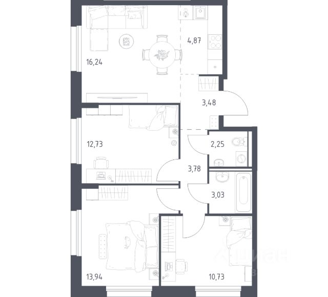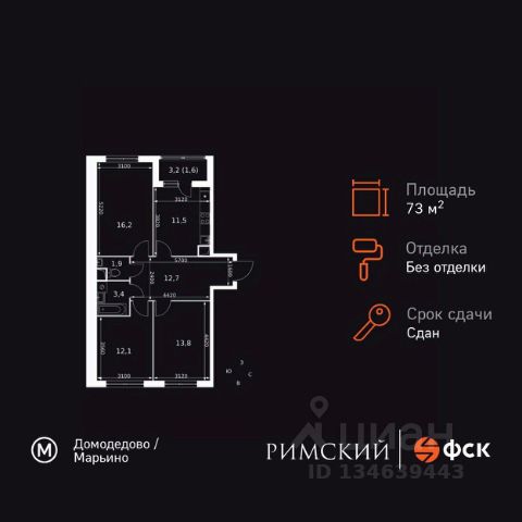 Прямая продажа от застройщика! Жилой Комплекс класса Комфорт. Продаётся 3-к квартира номер 1565 общей площадью 73.2 кв.м. на 2-м этаже 16 этажного здания. Без отделки. Цена с учётом скидки. Особенности квартиры: -Планировка повышенной комфортности -Идеальная планировка -2 км от МКАД -Двухуровневый двор без машин - Нестандартное окно - особенный акцент в вашем интерьере. - Раздельный санузел - больше удобства для всех членов семьи. - Просторная кухня - место для семейных ужинов и кулинарных экспериментов. - Лоджия - уютное место для отдыха и тишины. Квартира без отделки. Чистый холст для воплощения интерьера вашей мечты. Информация о комплексе: Архитекторы позаботились, чтобы красота и комфорт стали частью повседневной жизни жителя Римского квартала. Входные группы индивидуальны, однако в дизайне каждой угадывается итальянская любовь к декоративности и качественным отделочным материалам. Мы заботимся о свободном пространстве в вашей квартире, поэтому наличие кладовых позволит вам поддерживать идеальный порядок и уют в вашей квартире! На нижнем уровне комплекса проходят проезды, соединяющие весь квартал и расположены парковки. Дизайн подземных парковок с белоснежными колоннами вызывает ассоциации с историческим культурным слоем романской эпохи. Поэтому даже здесь вас не будет покидать ощущение особого места. Кладовые помещения находятся в каждой секции, доступ к ним осуществляется на современном лифте МЭЛ с пониженным уровнем шума. Бурная жизнь соседей больше не сможет нарушить ваш покой, а к вам никто не постучит, если вы захотите прибавить громкость в любимом музыкальном треке или Ваши дети захотят устроить ночную пробежку! Живите только по своим правилам. Транспортная доступность: Всего 2 км от МКАД, 15 минут на транспорте до метро "Домодедовская" и "Марьино" Внутренняя инфраструктура: Жителей Римского квартала отличает неспешность. В самом деле, зачем спешить, если все необходимое в шаговой доступности? Школа и детские садики расположены внутри квартала. Это значительно экономит время по утрам и позволяет спокойно насладиться завтраком даже в будни. Разнообразные кафе станут традиционным местом семейных бранчей по выходным или вечерних посиделок с друзьями.