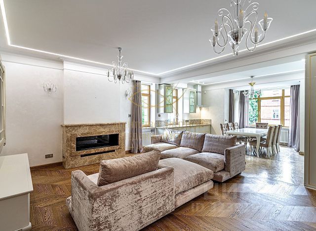 В комнатах на полу дубовая паркетная доска, в коридоре, ванной, кухне и постирочной - плитка (везде есть подогрев).