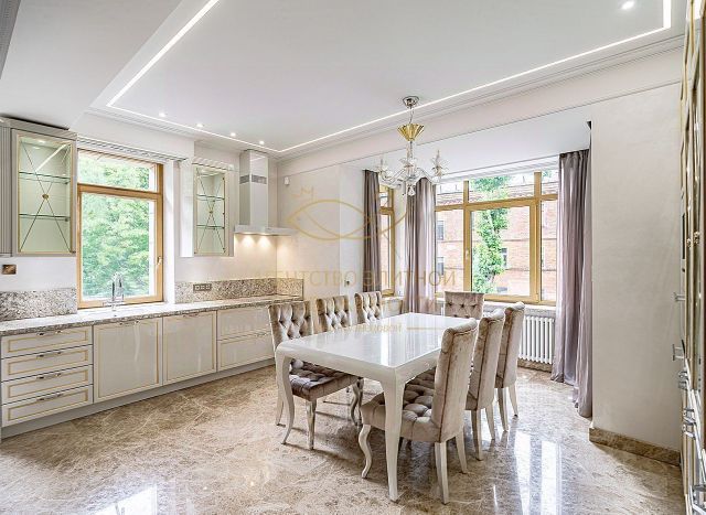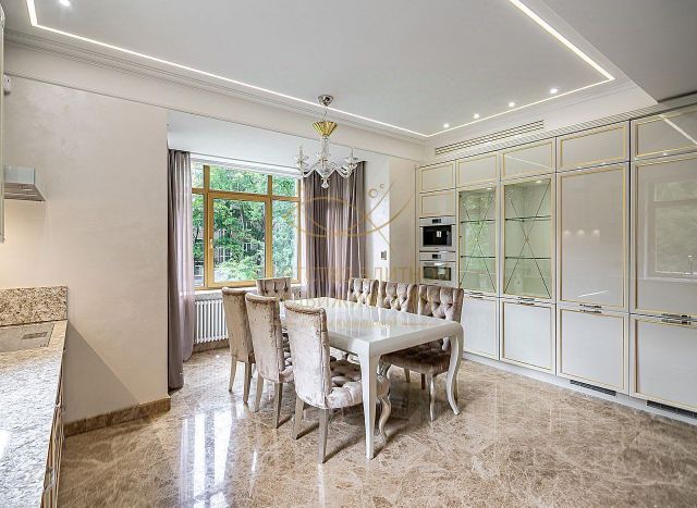 Встроенная кухня: посудомойка 60см, духовой электрический шкаф, варочная панель газовая (также подведена отдельная резервная линия на случай желания замены газа на электричество), встроенные холодильник и микроволновая печь, фильтр с обратным осмосом, измельчитель отходов, большая керамическая кухонная раковина, каменная столешница, подсветка рабочей зоны и витринного шкафа, теплый пол.