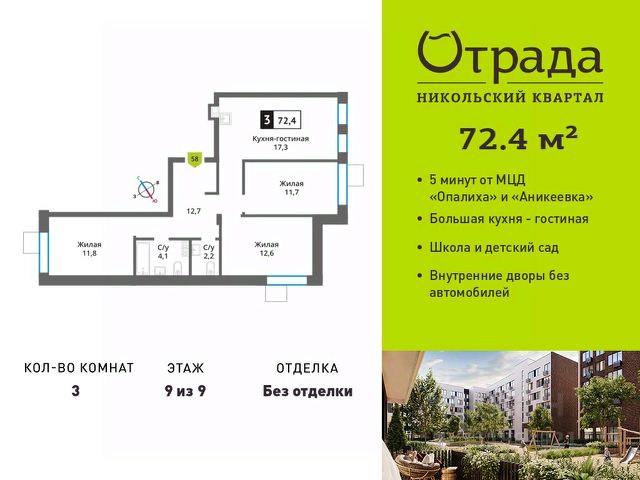 Купить 3-комнатную квартиру рядом со школой рядом с метро Митино