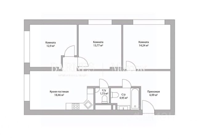 Купить 3-комнатную квартиру рядом со школой рядом с метро Москва-Сити (Калужско-Нижегородский диаметр (МЦД-4))