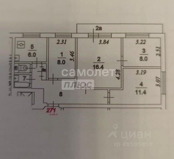 Квартира расположена на 1-м этаже 9-ти этажного дома. Общая площадь 50,8 кв.м. Площадь комнат 14.6 кв.м. + 8.0 кв.м., 11.2 кв.м. Кухня 6,2 кв.м.