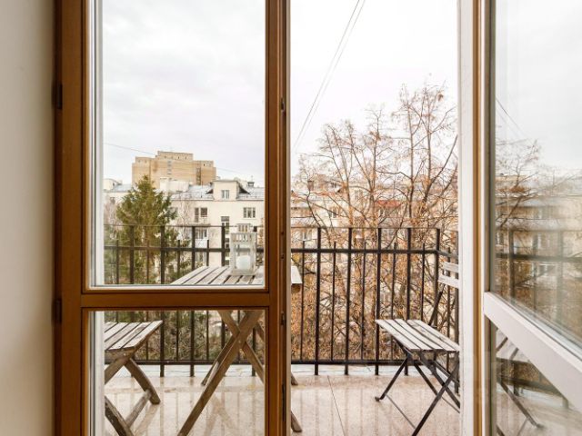 - отреставрированная входная группа дома: огромные двери из массива дерева с большими стеклянными вставками дают понять, что это не просто дом в центре Москвы, а дом с богатой историей!