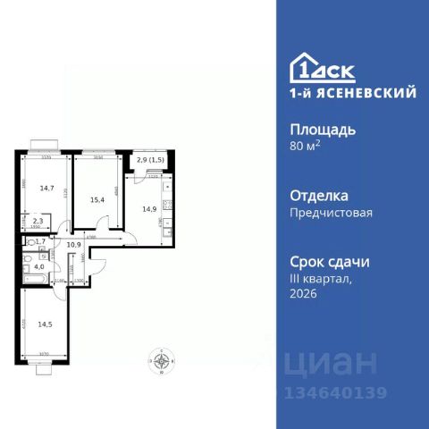 Прямая продажа от застройщика! Жилой Комплекс класса Комфорт Плюс. Продаётся 3-к квартира номер 506 общей площадью 80.7 кв.м. на 8-м этаже 18 этажного здания. Предчистовая отделка. Цена с учётом скидки. Особенности квартиры: - Квартиры рядом с метро - м. Корниловская 9 мин пешком - 63 га лесопарка за окнами - Школа c ИТ-кластером и бассейном. 2 детских сада - Организуем показ в удобное для вас время! - Мастер-зона с гардеробной. Просторное место для отдыха и удобного хранения вещей. - Распашная планировка - отличное сочетание удобства и свободы. - Гостевой санузел - комфорт и удобство для ваших гостей. - Можно оборудовать рабочее место - комфорт для работы и учёбы. - Просторная кухня - место для семейных ужинов и кулинарных экспериментов. - Линейная кухня - функциональность и практичность в одном решении. - Гардеробная - удобство для хранения и организации вещей. - Ниша под шкаф - компактное и удобное место для вещей. - Лоджия - уютное место для отдыха и тишины. Квартира с предчистовой отделкой. Вам не придется заниматься черновыми и трудоёмкими работы, а чистовую отделку и дизайн - сделайте на свой вкус. Информация о комплексе: ЖК "1-й Ясеневский": преимущества городской инфраструктуры и природы. Пешая доступность к метро, школе с бассейном и ИТ-кластеру, а также 63 га Троицкого лесопарка под окнами. Закрытая территория с бульварами, велодорожками, кафе и дворами без машин. Фруктовые деревья и городские сады создают уникальную атмосферу. Всего в 1 км от МКАД - идеальный баланс для современной жизни. Транспортная доступность: До метро "Корниловская" - 12 минут пешком До метро "Тютчевская" - 25 минут пешком До метро "Теплый стан" - 10 минут на транспорте До метро "Ольховая" - 30 минут на общественном транспорте Личный автотранспорт: Выезд на Калужское шоссе - 500 м МКАД - 1 км Внутренняя инфраструктура: ЖК "1-й Ясеневский" - идеальное место для семей с детьми. Рядом Троицкий лесопарк для прогулок, а во дворах - современные детские площадки, разработанные с участием психологов. В шаговой доступности два детских сада и школа на 1100 мест с ИТ-кластером, бассейном и классами робототехники. Всё для счастливого детства и успешного будущего. Квартира с предчистовой отделкой - ваш дизайн без черновых работ