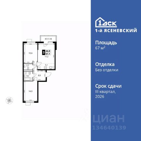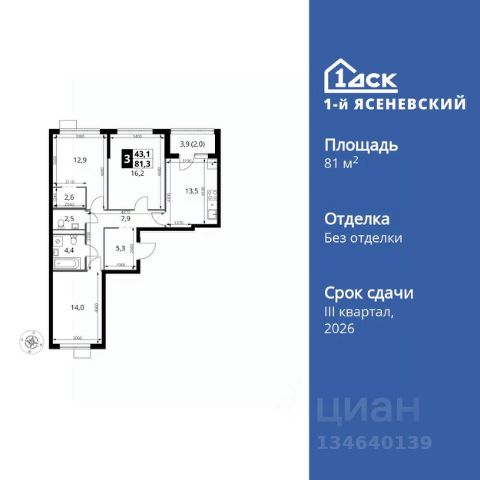 Прямая продажа от застройщика! Жилой Комплекс класса Комфорт Плюс. Продаётся 3-к квартира номер 1068 общей площадью 81.3 кв.м. на 2-м этаже 6 этажного здания. Без отделки. Особенности квартиры: - Квартиры рядом с метро - м. Корниловская 9 мин пешком - 63 га лесопарка за окнами - Школа c it-кластером и бассейном. 2 детских сада - Просторная спальня, в которой можно разместить большую кровать. - Распашная планировка - отличное сочетание удобства и свободы. - Гостевой санузел - комфорт и удобство для ваших гостей. - Гибкая планировка - создайте пространство по своему вкусу. - Просторная кухня - место для семейных ужинов и кулинарных экспериментов. - Линейная кухня - функциональность и практичность в одном решении. - Гардеробная - удобство для хранения и организации вещей. - Лоджия - уютное место для отдыха и тишины. Информация о комплексе: В жилом комплексе комфорт-плюс класса "1-го Ясеневского" доступны преимущества двух стилей жизни. Ведь в пешей доступности метро, школа с 25-метровым бассейном и IT-кластером и при этом целых 63 га благоустроенного Троицкого лесопарка под окнами, где так приятно дышать свежим воздухом и слушать пение птиц. Собственная закрытая территория "1-го Ясеневского" представляет собой уютный оазис. Здесь и зеленый освещенный бульвар для прогулок, система велодорожек, маленькая городская площадь, кафе, пекарни и кофе поинты. А еще дворы без машин и многоэтажная парковка. Изюминка территории - фруктовые деревья во дворах и городские сады. "1-й Ясеневский" - всего в 1 км от МКАД, на территории новой Москвы. Жилой комплекс, где есть все необходимое для современного человека. Транспортная доступность: До метро "Корниловская" - 12 минут пешком До метро "Тютчевская" - 25 минут пешком До метро "Теплый стан" - 10 минут на транспорте До метро "Ольховая" - 30 минут на общественном транспорте Личный автотранспорт: Выезд на Калужское шоссе - 500 м МКАД - 1 км Внутренняя инфраструктура: ЖК "1-й Ясеневский" можно назвать идеальным местом для жизни семьи с детьми. Здесь буквально за домом находится Троицкий лесопарк - излюбленное место прогулок молодых родителей. А во внутренних дворах под детские площадки выделены специальные зоны. Они оборудованы всем, что нужно для счастливого детства: современными и максимально безопасными качелями, песочницами и лазалками. Оборудование и игровые сценарии на детских площадках спроектированы вместе с командой детских психологов для правильного развития ребенка и для повышения их интереса. Также рядом с домом два детских садика, один из которых уже построен и школа на 1100 мест. Школу по праву можно назвать образцовым учебным заведением. В ней закладываются основы успешного будущего. Здесь есть класс робототехники, IT-кластер, 25-метровый бассейн и прекрасно оборудованные спортзалы.