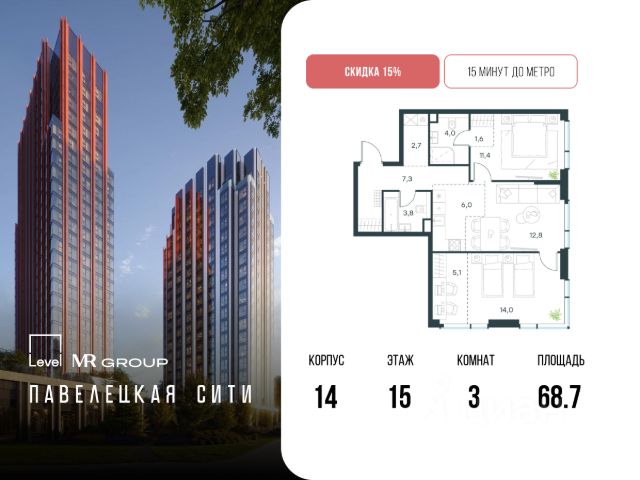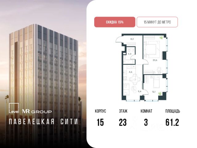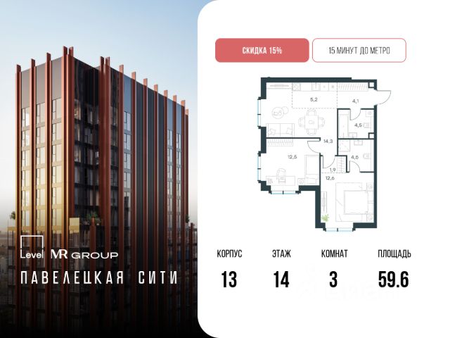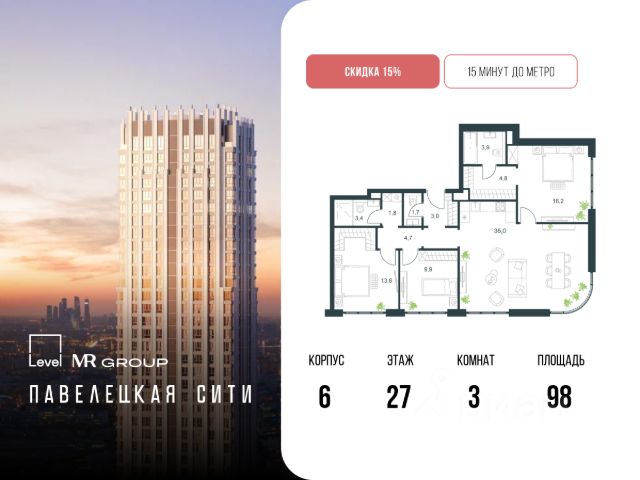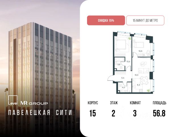 В Даниловском районе столицы (ЮАО) продаётся 3-комнатная квартира площадью 57.70 кв.м без отделки. Квартира расположена на 2 этаже 27-этажного корпуса 'Горизонт' в жилом комплексе бизнес-класса Павелецкая Сити. Высота потолков 3.00м. Престижная локация "Павелецкая Сити" - жилой комплекс бизнес-класса, расположенный в престижном Даниловском районе Москвы, на границе с ЦАО. Проект находится в историческом центре города в окружении парков, Москвы-реки и сформированной инфраструктуры. В пределах 20 минут пешком есть 3 станции метро, а в 5 минутах езды на авто - ТТК и Садовое кольцо. - 15 мин. пешком до метро "Павелецкая"; - 20 мин. пешком до станций "Тульская" и "Серпуховская"; - 8 мин. на авто до Кремля; - 10 мин. на авто до парка Горького и парка "Зарядье"; - 20 мин. на авто до башен "Москва-Сити". Авторская архитектура Архитектурная концепция разработана бюро СПИЧ по индивидуальному проекту. Облик корпусов I и II очередей отсылает к стилистике архитектуры классического Нью-Йорка и золотой эпохи Голливуда. Корпуса IV очереди вдохновлён эстетикой ар-деко в её современном переосмыслении. Благодаря линейному расположению корпусов из большинства квартир будут открываться потрясающие виды на исторический центр города и Москву-реку. Дизайнерские лобби Изысканные интерьеры лобби жилого комплекса отсылают к классическим фильмам золотой эпохи Голливуда. Классика в "Павелецкая Сити" - не имитация, а современное осмысление лучшего в этом стиле. В каждом вестибюле оборудованы стойки ресепшен, комфортные зоны ожидания, гостевые санузлы, мойки для лап животных, колясочные. В корпусах по 3-4 лифта, включая сервисный, с прямым доступом в паркинг. Площадь лобби - от 47,9 до 114,9 кв. м, высота потолков - до 5,46 м. Благоустройство и инфраструктура Для создания благоустройства было приглашено 2 ведущих бюро - ADM и GAFA. Разноуровневое пространство вмещает всё необходимое для качественного досуга: игровые площадки для детей всех возрастов, тропы здоровья для пеших прогулок, крытые аллеи с качелями, места для работы на свежем воздухе, многофункциональные спортивные площадки - воркаут-зоны, столы для пинг-понга, зоны командных игр. Общая площадь закрытого двора - 4,63 га. Комфорт - это когда рядом всё, что нужно для жизни. На первых этажах и в стилобатной части корпусов "Павелецкая Сити" размещены 85 коммерческих помещений, где откроются супермаркеты, кафе, пекарни, аптеки и другие службы сервиса. В составе проекта также предусмотрены собственный фитнес-клуб и развивающий центр Letovo Kids, а также школа на 720 мест и детский сад на 175 мест. Технологии и безопасность - Wi-Fi в лобби и на придомовой территории; - Автоматизированная система контроля и учета ресурсов; - Круглосуточное видеонаблюдение и охрана; - Круглосуточная связь с охраной через приложение, телефон или кол-центр; - Контроль доступа по биометрической системе Face-ID; - Усиленный сотовый сигнал в лифтах и паркинге; - Распознавание номеров автомобилей при въезде/выезде в/из паркинга.