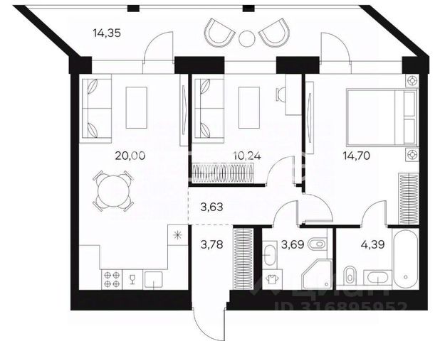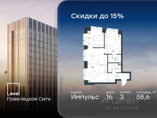 Цена указана с учётом скидки при 100%-й оплате, несубсидированной ипотеке, рассрочке (кроме программы "Рассрочка 0%"). В Даниловском районе столицы (ЮАО) продаётся 3-комнатная квартира площадью 57.70 кв.м без отделки. Квартира расположена на 2 этаже 27-этажного корпуса 'Горизонт' в жилом комплексе бизнес-класса Level Павелецкая Сити. Высота потолков 3.00м. Престижная локация "Level Павелецкая Сити" - это жилой комплекс бизнес-класса, расположенный в престижном Даниловском районе Москвы - историческом центре города в окружении парков, Москвы-реки и новейшей инфраструктуры. В 20 минутах пешком есть 3 станции метро, а в 5 минутах езды на авто - ТТК и Садовое кольцо. - 15 мин. пешком до метро "Павелецкая"; - 20 мин. пешком до станций "Тульская" и "Серпуховская"; - 8 мин. на авто до Кремля; - 10 мин. на авто до парка Горького и парка "Зарядье"; - 20 мин. на авто до башен "Москва-Сити". Авторская архитектура Авторская архитектурная концепция разработана бюро СПИЧ. Облик корпусов I и II очередей отсылает к стилистике архитектуры классического Нью-Йорка и золотой эпохи Голливуда. Корпуса IV очереди вдохновлены эстетикой ар-деко. Умное линейное расположение корпусов гарантирует потрясающие виды на исторический центр и Москву-реку из большинства квартир. Дизайнерские лобби Изысканные интерьеры лобби жилого комплекса отсылают к классическим фильмам золотой эпохи Голливуда. Классика в "Level Павелецкая Сити" - не имитация, а современное осмысление лучшего в этом стиле. В каждом вестибюле оборудованы стойки ресепшен, комфортные зоны ожидания, гостевые санузлы, мойки для лап животных, колясочные. В корпусах по 3-4 лифта с прямым доступом в паркинг. Площадь лобби - от 47,9 до 114,9 кв. м, высота потолков - до 5,46 м. Благоустройство и инфраструктура Для создания благоустройства было приглашено 2 ведущих бюро - ADM и GAFA. Разноуровневое пространство вмещает в себя игровые площадки для детей всех возрастов, тропы здоровья для пеших прогулок, крытые аллеи с качелями, места для работы на свежем воздухе, многофункциональные спортивные площадки - воркаут-зоны, столы для пинг-понга, зоны командных игр. Общая площадь закрытого двора - 4,63 га. Комфорт - это когда рядом всё, что нужно для жизни. На первых этажах и в стилобатной части корпусов "Level Павелецкая Сити" размещены 85 коммерческих помещений, где откроются супермаркеты, кафе, аптеки и многое другое. В составе проекта также предусмотрены собственный фитнес-клуб, развивающий центр Letovo Kids, школа на 720 мест и детский сад на 175 мест. Технологии и безопасность - Wi-Fi в лобби и на придомовой территории; - Автоматизированная система контроля и учета ресурсов; - Круглосуточное видеонаблюдение и охрана; - Круглосуточная связь с охраной через приложение, телефон или кол-центр; - Контроль доступа по биометрической системе Face-ID; - Усиленный сотовый сигнал в лифтах и паркинге; - Распознавание номеров автомобилей при въезде/выезде в/из паркинга.